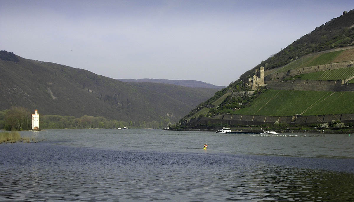 From this viewpoint Burg Ehrenfels is seen against the steep vineyards amongst which it stands. The sunbathed slopes of Ehrenfels and brilliantly illuminated Mausethurm are the defining visual characters at the site.
