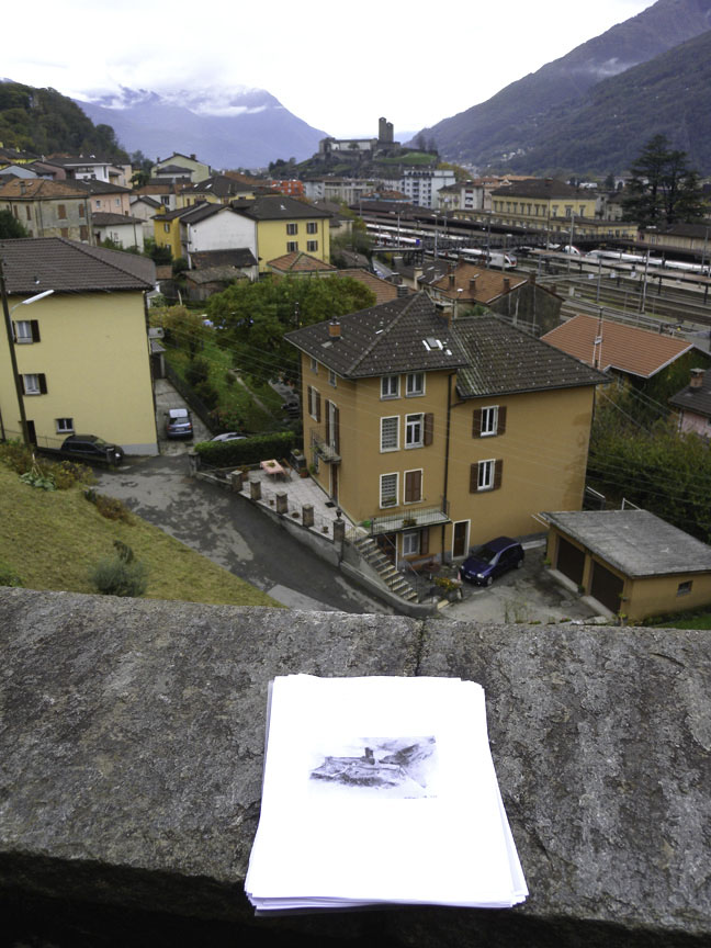 When I photographed the subject on 2 November 2012 there were a few figs and olives growing on the terraces, together with one rather untidy Kiwi fruit, but the garden looked unloved. Given Ruskin’s description: ‘hopelessly beautiful, to give any idea of in drawing; steps descending hither and thither, half rock, half laid stone; just flowers and grass enough to make the rocks lovely without in the least hiding them’, and his obligation to tend it with ‘sundry bucketsfull of snow water… much to its refreshment- and the villagers’ astonishment’, it might be a worthwhile project for the citizens of Bellinzona to bring back something of that loveliness to these terraces as a living memorial to Ruskin’s association with the city.
