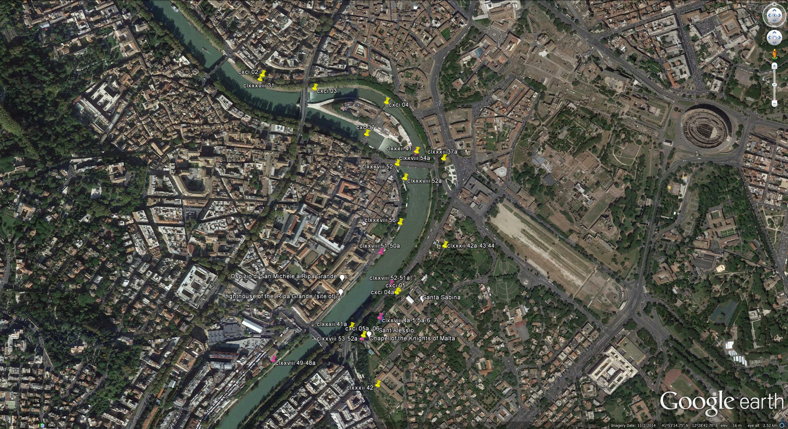 ![Google Earth image of Mount Aventine area, plotting Turner’s sketches of 1819 (yellow) and 1828 (magenta). Click on image to enlarge.]](https://sublimesites.co/wp-content/uploads/2015/01/ge-aventine-sketches2.jpg?w=1100)