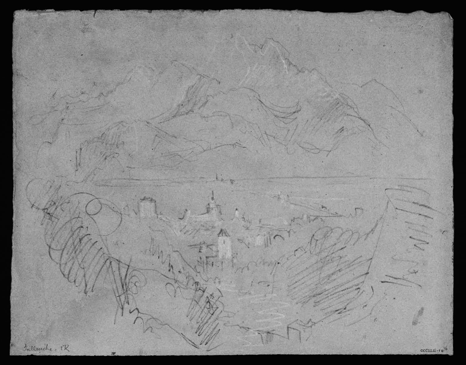 Two Sketches; The Head of Lake Geneva from near Lausanne; From above Sallanches in the Arve Valley to the Aiguille de Varan and Mont Blanc (detail of sketch of Sallanches), 1836