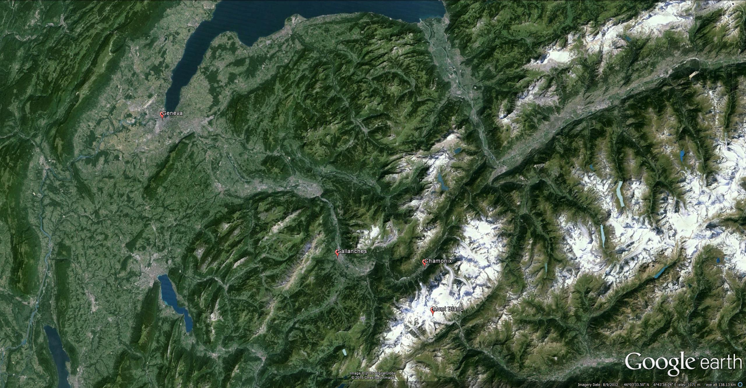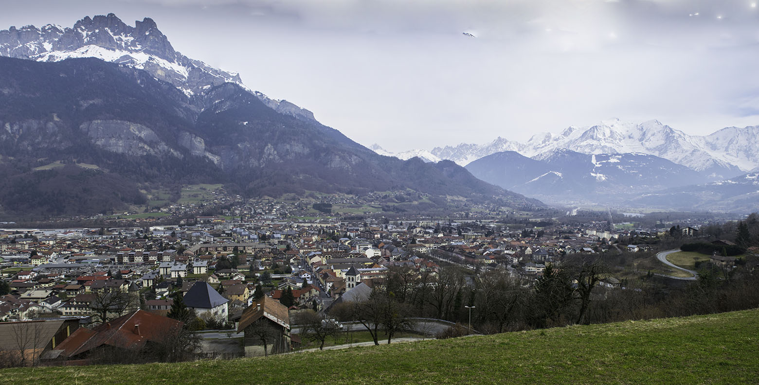 From above the Chateau des Rubins, looking from the entrance to the Gorges de Levaud to Sallanches and the Aiguille de Varan.