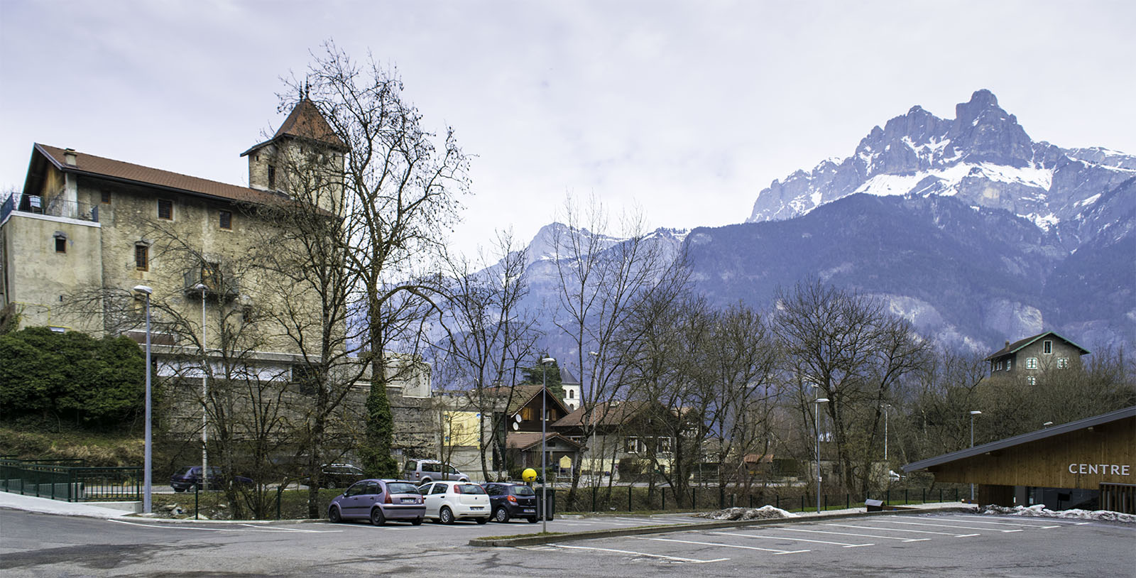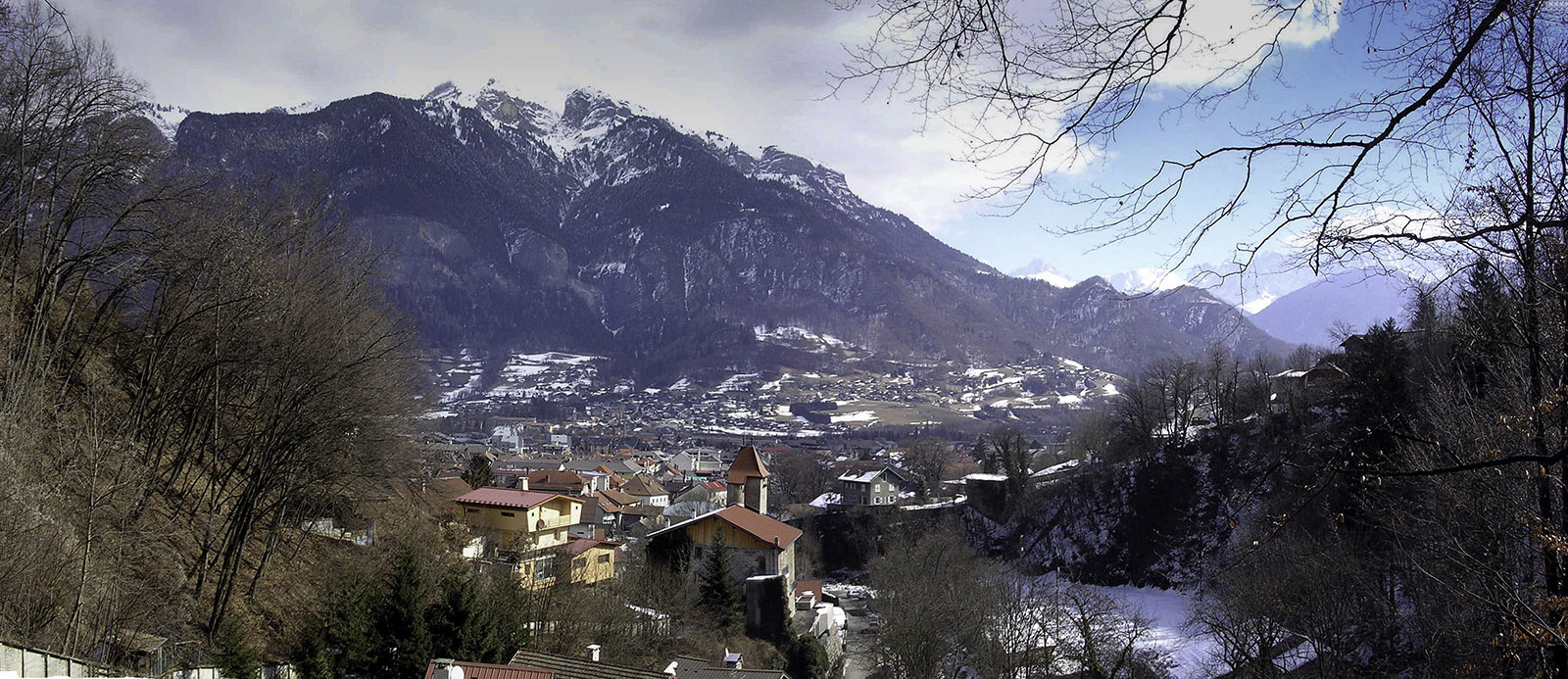 Looking over the Chateau des Rubins to Sallanches with the Aiguille de Varan in the background. up. Taken from the path leading down from the Chapel of the Immaculate Conception. The church tower is hidden behind the trees at the left. Ten years ago exactly, I note with some surprise, and much more snow than this year.