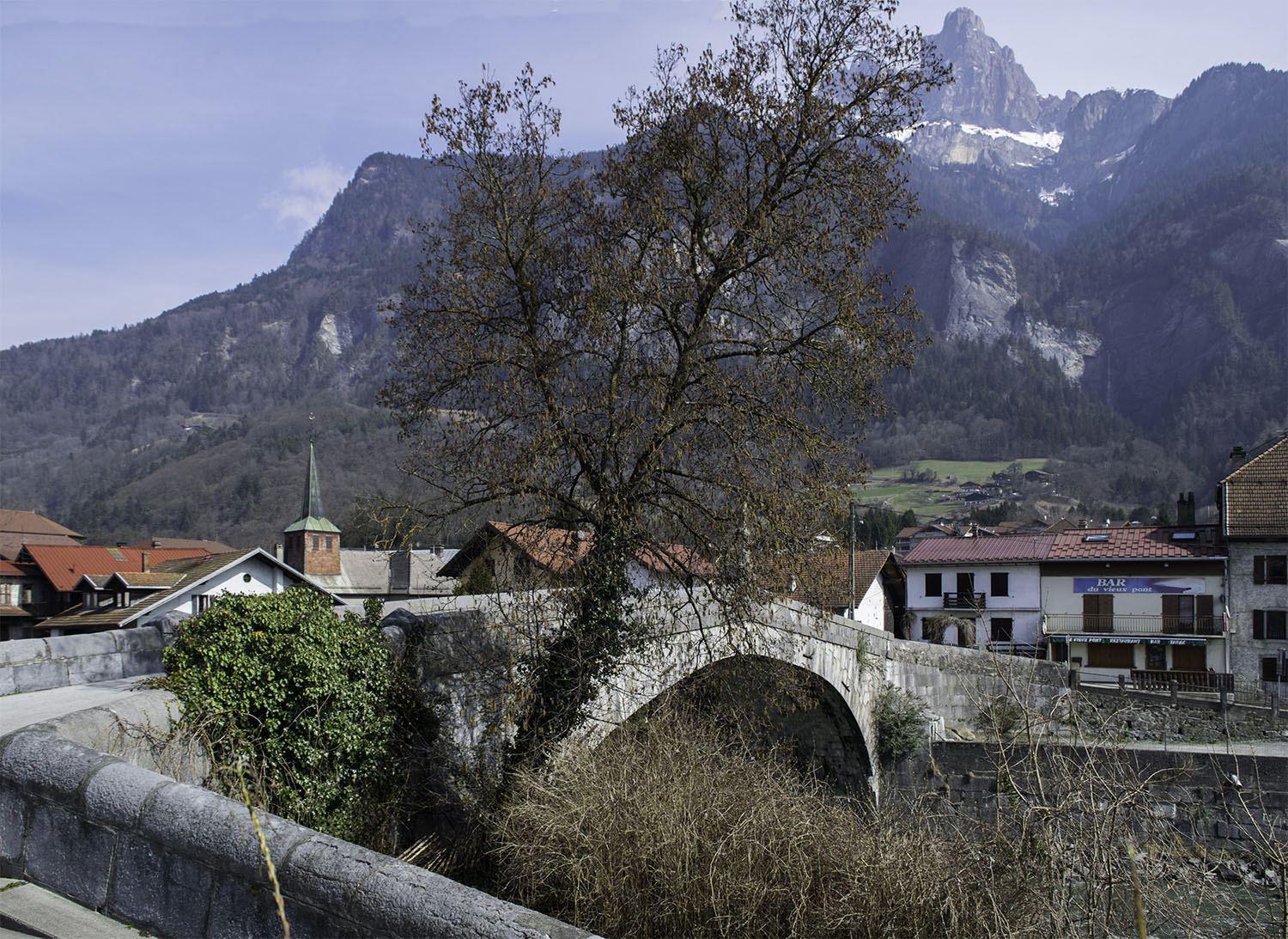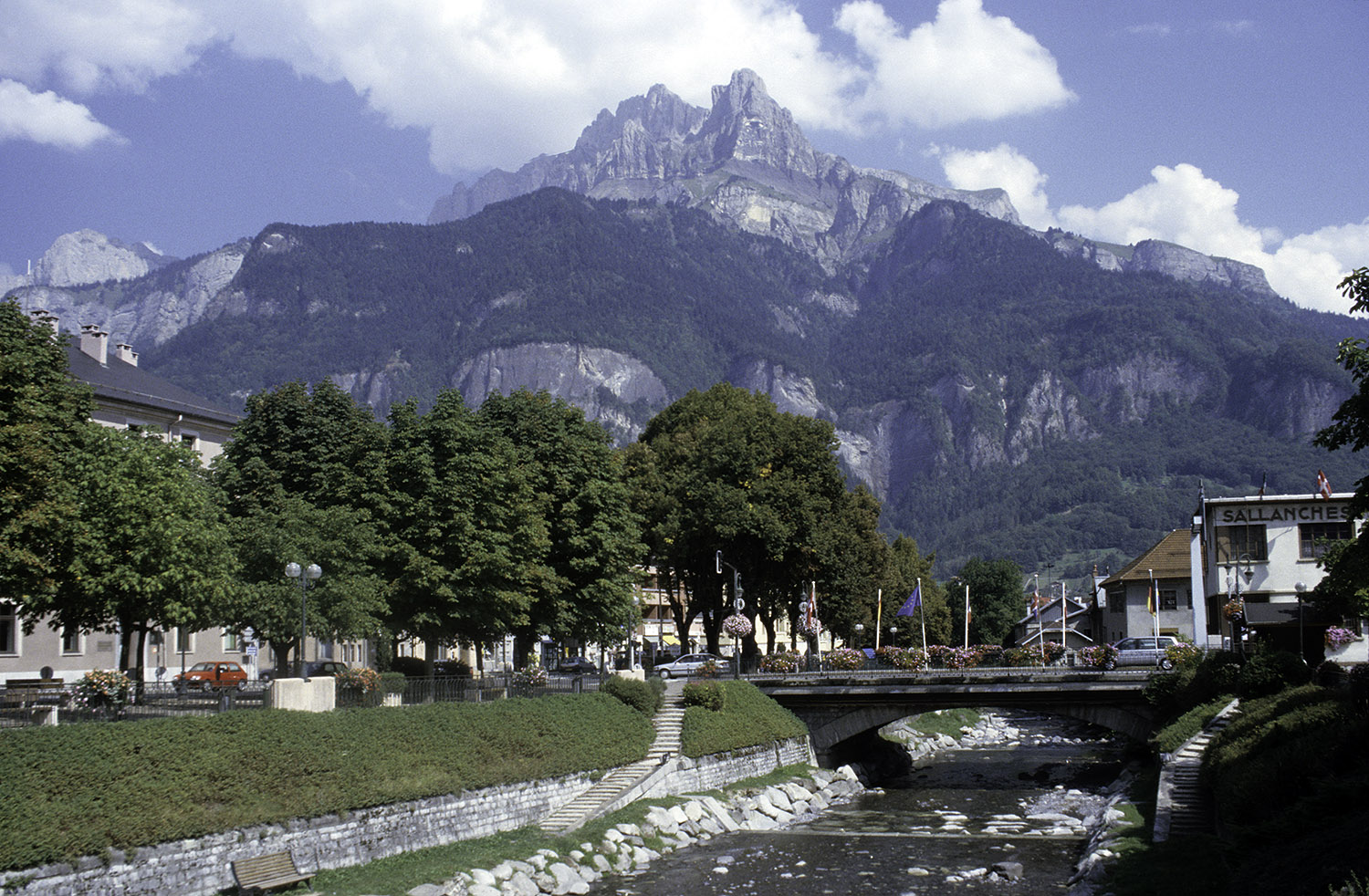 From Sallanches, looking down the torrent de Sallanches to the Aiguille de Varan