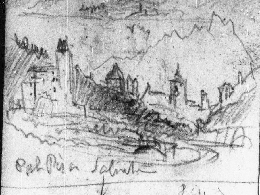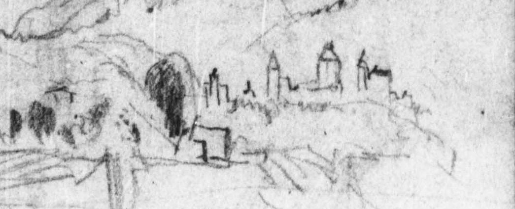 Four Sketches: Arras; Storm in the ?Arve Valley; From above Sallanches; and From Pré St Didier in the Val d’Aosta (detail of sketch of Sallanches), 1836