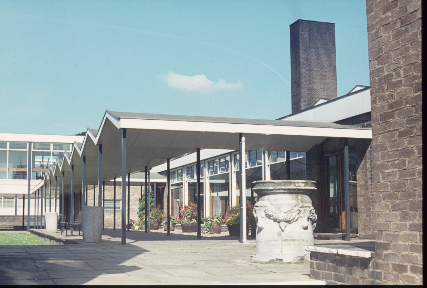 Halls of residence at Bretton Hall, with the Greek well-head from Corinth Photograph by Derek Linstrum Image courtesy of York Digital Library: The University of York To see this image amongst Derek Linstrum’s collection on the York Digital Library website, click on the following link, and use your browser’s ‘back’ button to return to this page: https://dlib.york.ac.uk/yodl/app/image/detail?id=york%3a846764&ref=browse