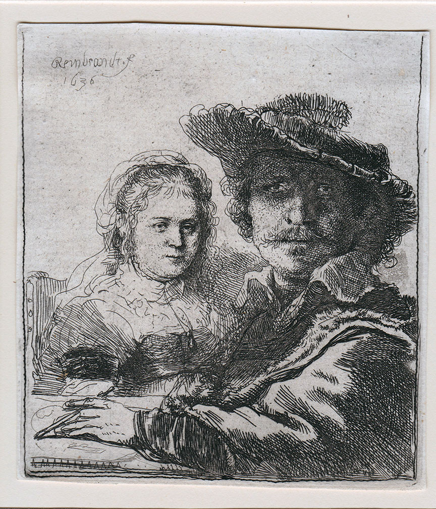 Bought from Hanson’s Auctioneers of Etwall, Derbyshire, at their sale of 29 June 2017 where lot 636 as ‘Rembrandt Harmenszoon van Rijn (1606-1669), Self Portrait with Saskia (B.19), etching, 10.5cm x 9.5cm, framed’.