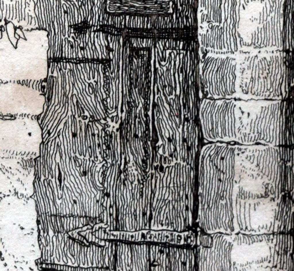 In many ways that is exactly where Cotman’s focus lay at this time. He was still tentatively feeling his way forward into etching – his earliest dated venture is an unpublished plate of Old Cottages dated 9 June 1810 and before beginning the present plate he can have made only half a dozen previous attempts of any kind. His attention was resolutely in achieving some real aesthetic quality to his etched line. The one earlier plate thus far in the published series of Miscellaneous Etchings – The Manor House York – whilst Rembrandtian enough – was largely, as he acknowledged, the product of being over-worked. There are however, signs that he was beginning to see calligraphic, even hieroglyphic possibilities with the etched line, and here, in the portal of Valle Crucis, he began to find the basis on which to extend his expressiveness. To have sufficient technique to use it with talent.