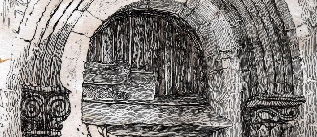 Cotman’s printed descriptive index in the 1811 edition explains that ‘The Doorway given here is from part of the Ruins under the Dormitory’.