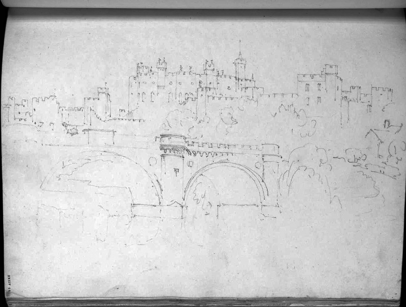 Turner’s only sketches at Alnwick date from his visit in 1797. On that occasion he sketched three subjects, the gateway to Alnwick Abbey, the tower of St Michael’s Church, and the view of the castle across the bridge.