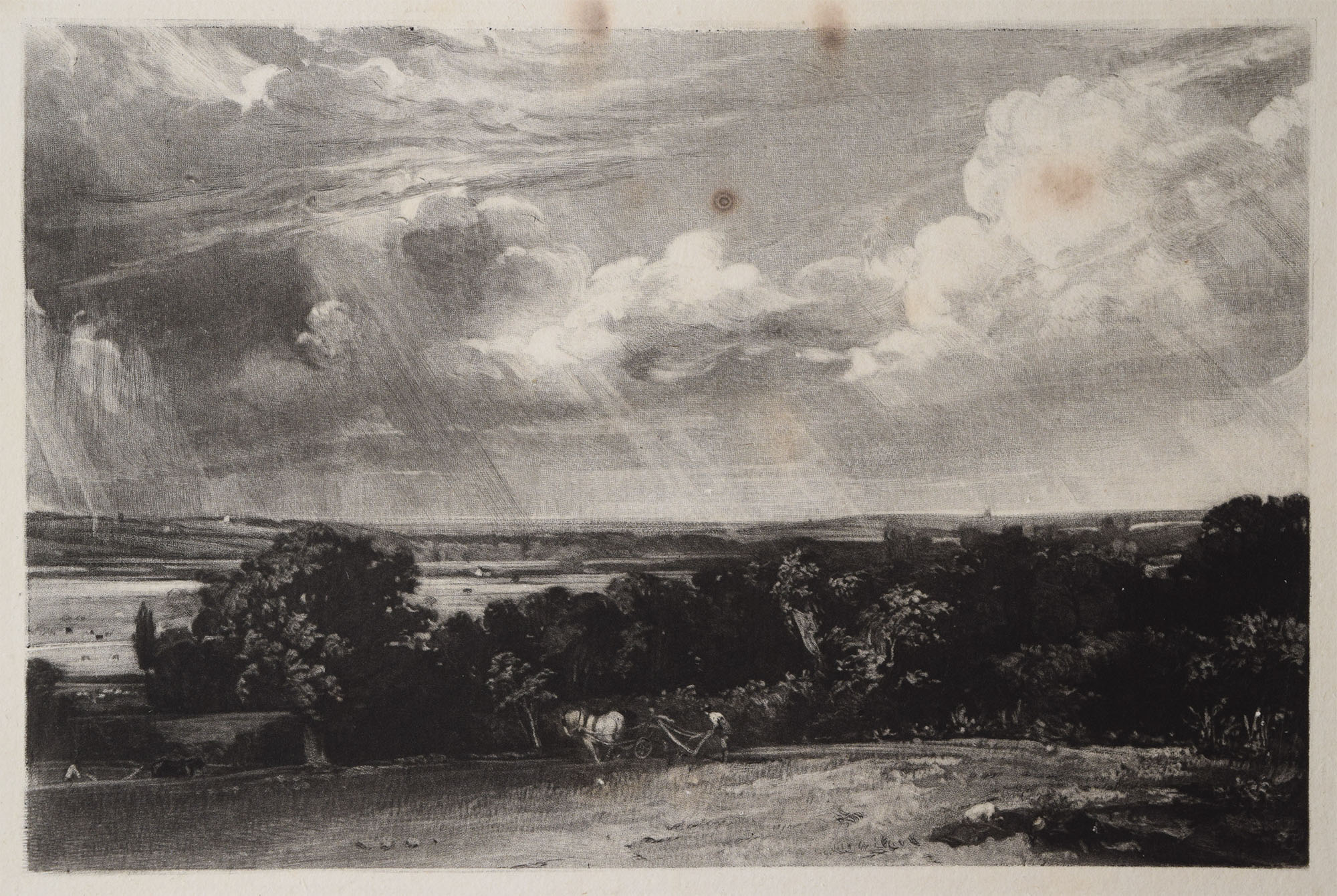 This impression is an example of the final state before lettering and publication. The Hon Andrew Shirley’s definitive 1930 catalogue of the ‘Mezzotints of David Lucas after John Constable’, where ‘A Summerland’ is no.10, defines several distinct states e-h, all identical in terms of the image, except for variations in the finish of the edges.