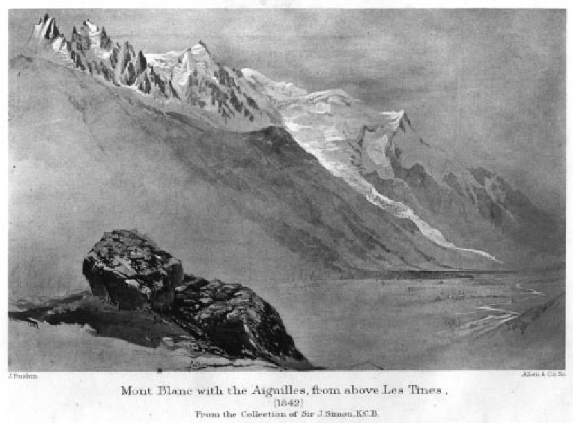 Mont Blanc with the Aiguilles, from above Les Tines, reproduced in the Library edition as Vol.4, frontispiece, when in the collection of Sir John Simon.