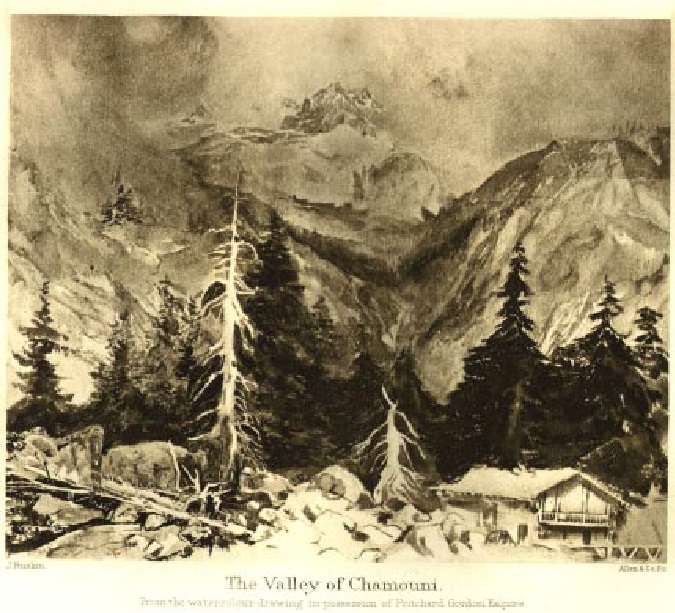 Chamouni in Afternoon Sunshine, or On the Road to Chamouni, given by Ruskin to his tutor Osborne Gordon, and reproduced in the Library edition as Vol.3, pl.4, when in the collection of W Pritchard Gordon.