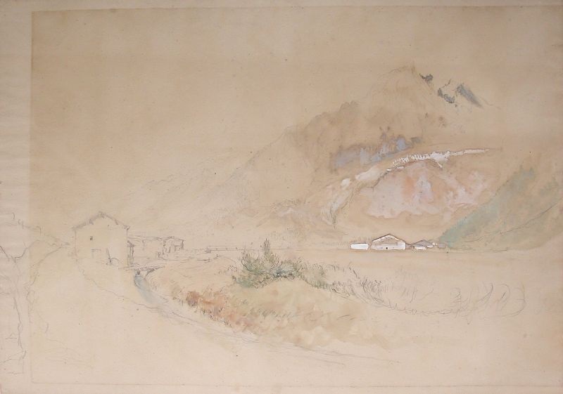 At some stage I might secure an opportunity to write something at length about Ruskin and the Alps. My database includes one hundred and forty-seven subjects with Chamonix in the title, and perhaps as many more in the area of Mont Blanc. Many more no doubt remain to be catalogued. One day some Alpine venue might think of staging what could be a superb exhibition. For the present I’ll content myself with expanding the frame of the present drawing a little more.