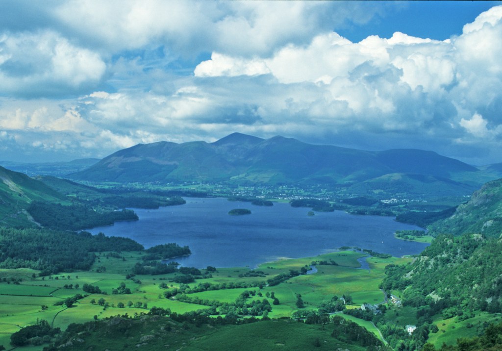 The subject is Skiddaw in the northern Lake District, seen from the southern end of Derwentwater near Lodore. The view is almost unchanged to this day.