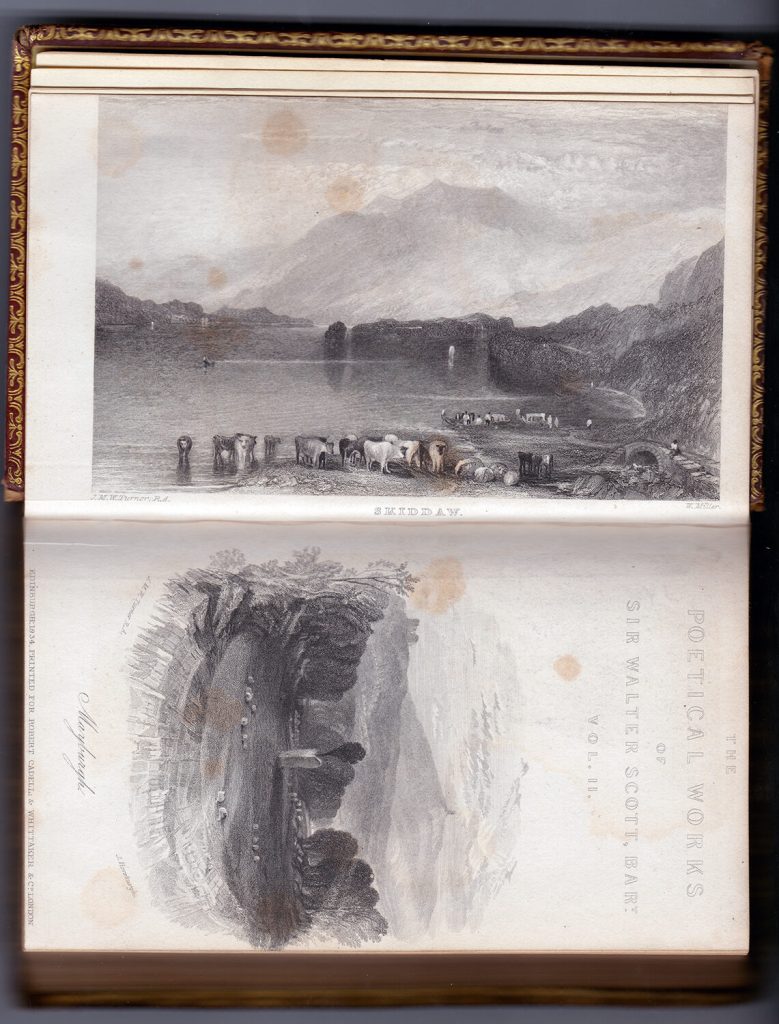The subject was designed to illustrate Scott’s dramatic poem ‘The Bridal of Triermain’, the first item in volume 11 of the ‘Poetical Works’. The poem is set in the north-east Lake District, but has nothing whatsoever to do with Derwentwater or Skiddaw, except for the slightest passing mention.