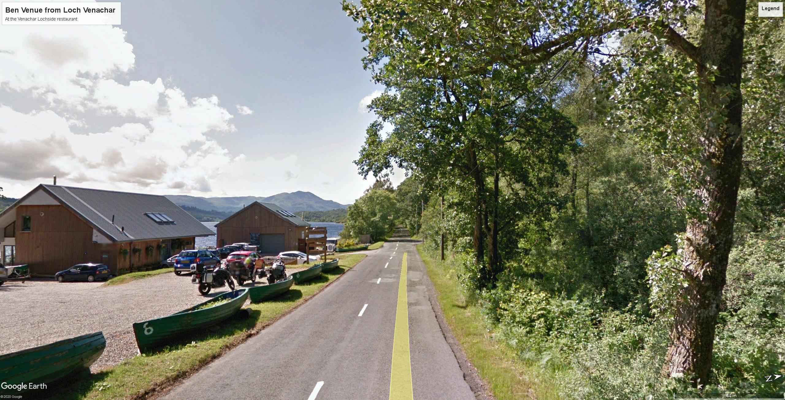 On the eastern approach to Loch Achray and Ben Venue from Callendar the mountain is first well seen about half-way down the north shore of Loch Venachar, where the road first comes down to the shore. That particular station has sufficient potency to have given rise in recent years to a café, recently upgraded to a restaurant, the Venachar Lochside.