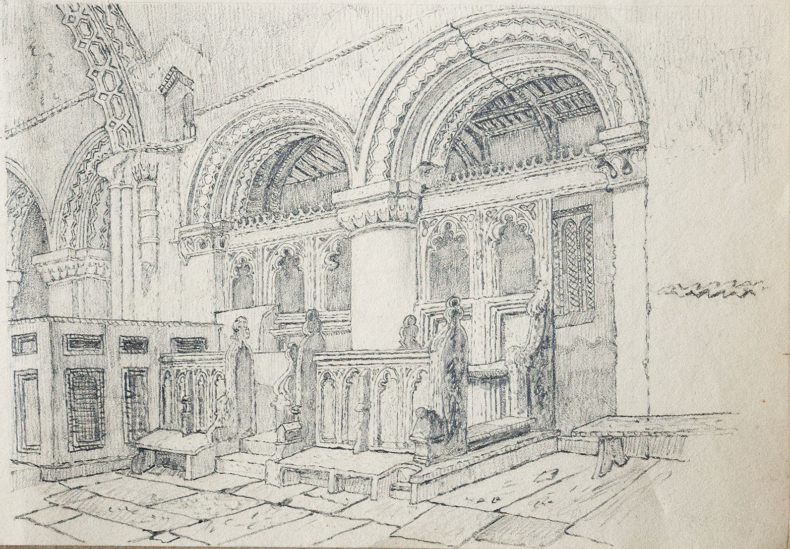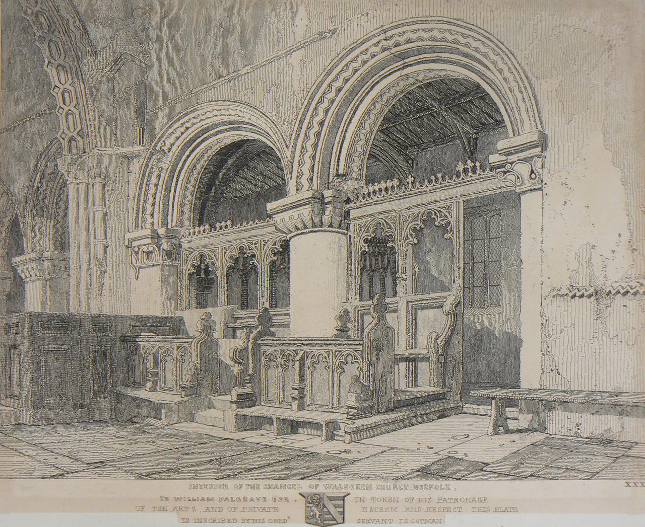 This a carefully-drawn pencil copy of a composition by John Sell Cotman. The subject is the chancel of Walsoken Church, Norfolk.