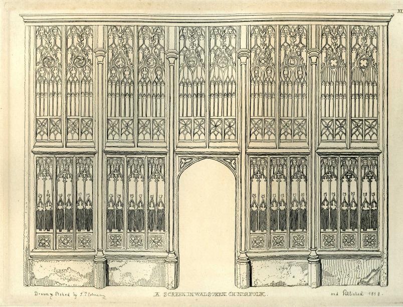 When cataloguing the Cotman drawings at Leeds Art Gallery a couple of years ago, I was struck how even in subjects that seem only to have required tedious technical transcription, such as a Rood Screen at Walsoken Church, Norfolk,