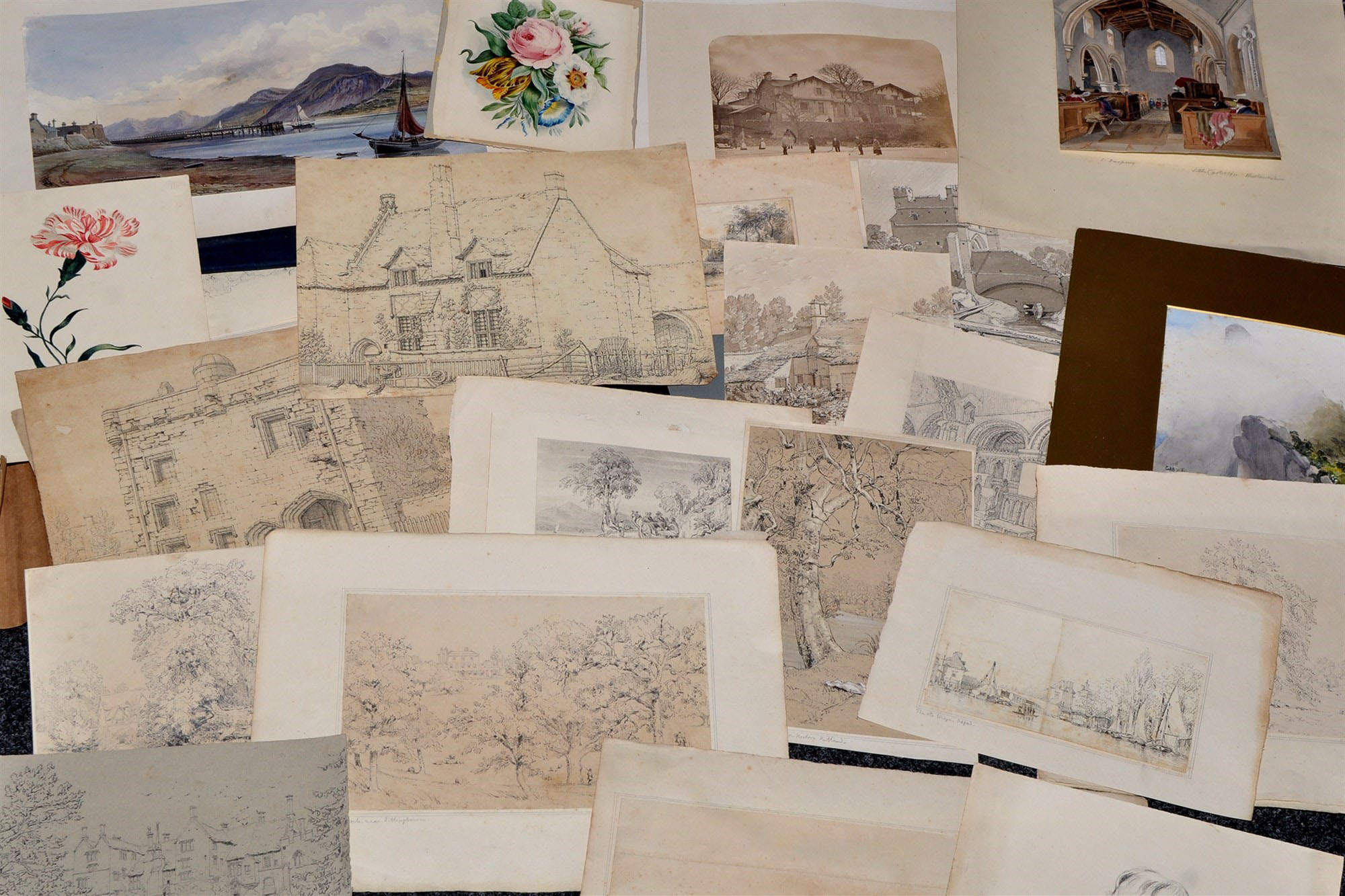 The other two flower drawings were photographed alongside all the other drawings when the portfolio was auctioned in 2017, but this was not included in that array.