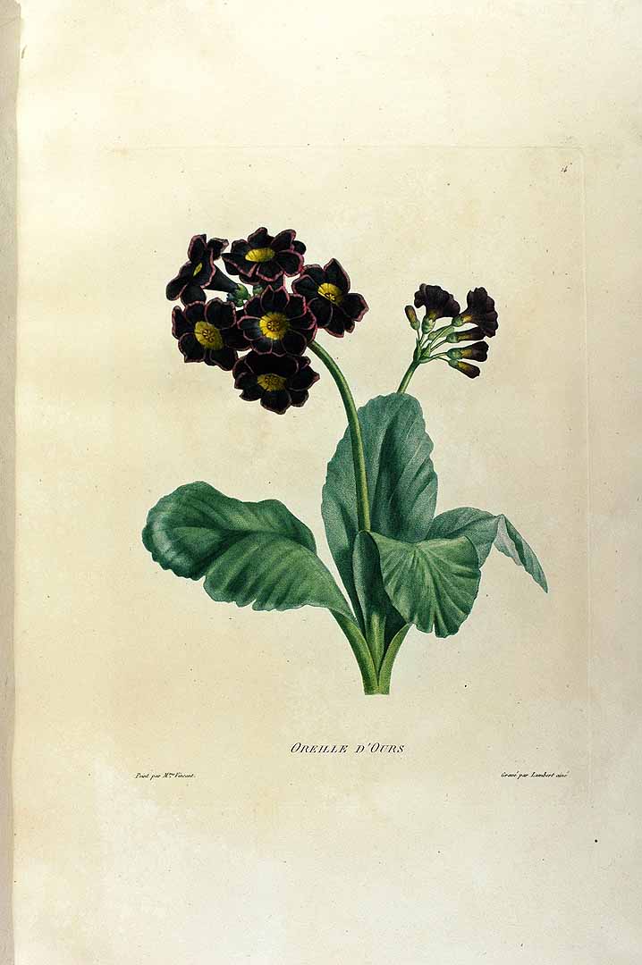 that is almost identical and which, together with the basal leaves at the base of the present bouquet, confirms the identification beyond any doubt. The source calls it by its traditional name of ‘Oreille d’Ours’ or Bear’s Ears, on account of the shape of the individual petals.