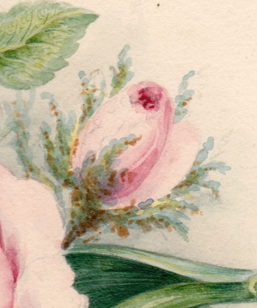 Here we look at the last of three flower drawings from a portfolio within the portfolio that once belonged to Sarah Parkin of Skirsgill, Cumbria. This drawing, however, is unique for being painted on silk. It also seems to have had some history even before Sarah Parkin was born.