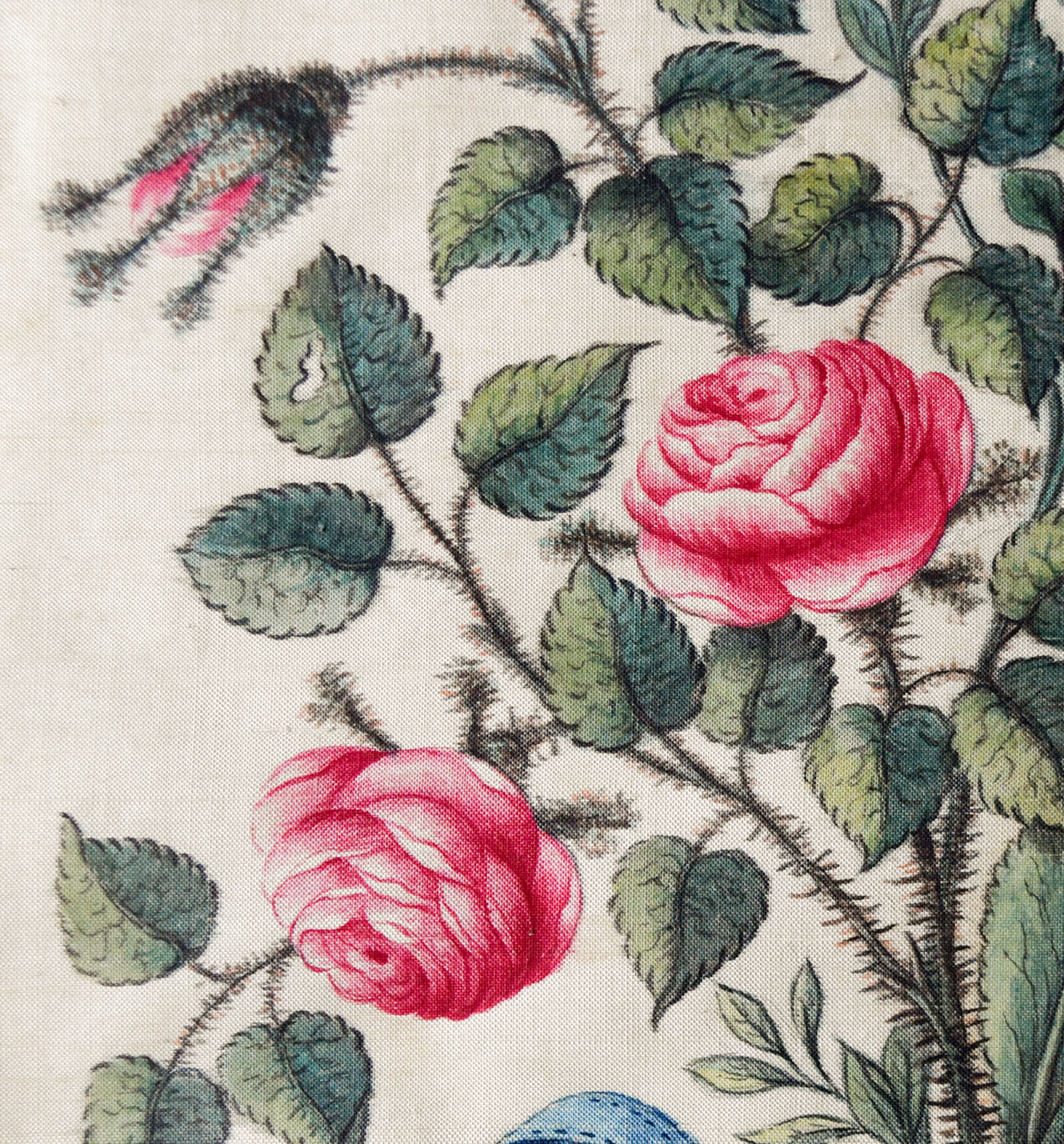 The history of this plant is particularly interesting. In fact, the first cultivated specimens were only launched onto the market in 1839, and at the time this silk was painted there was perhaps just the first stirrings of interest in the breeding of varieties.