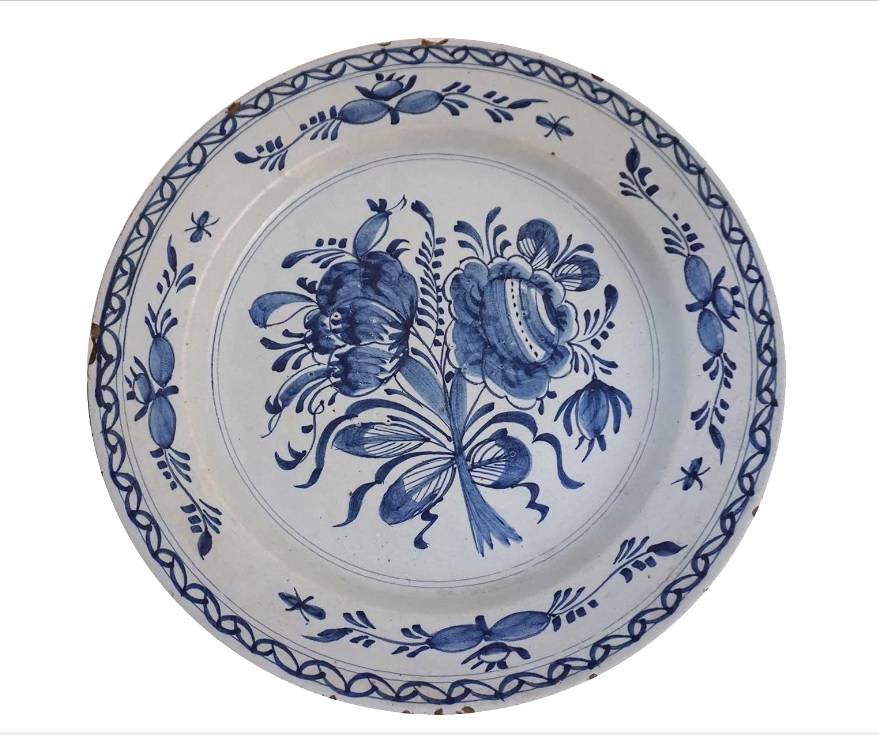 By the second half of the eighteenth century, the motif could be abstracted into pure arabesque as in this Delft plate design.