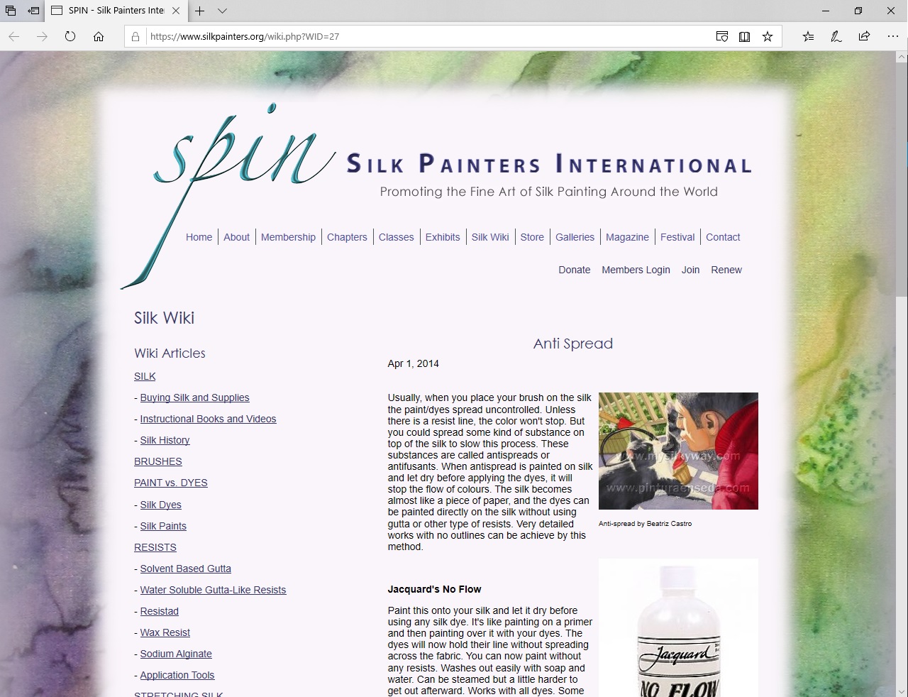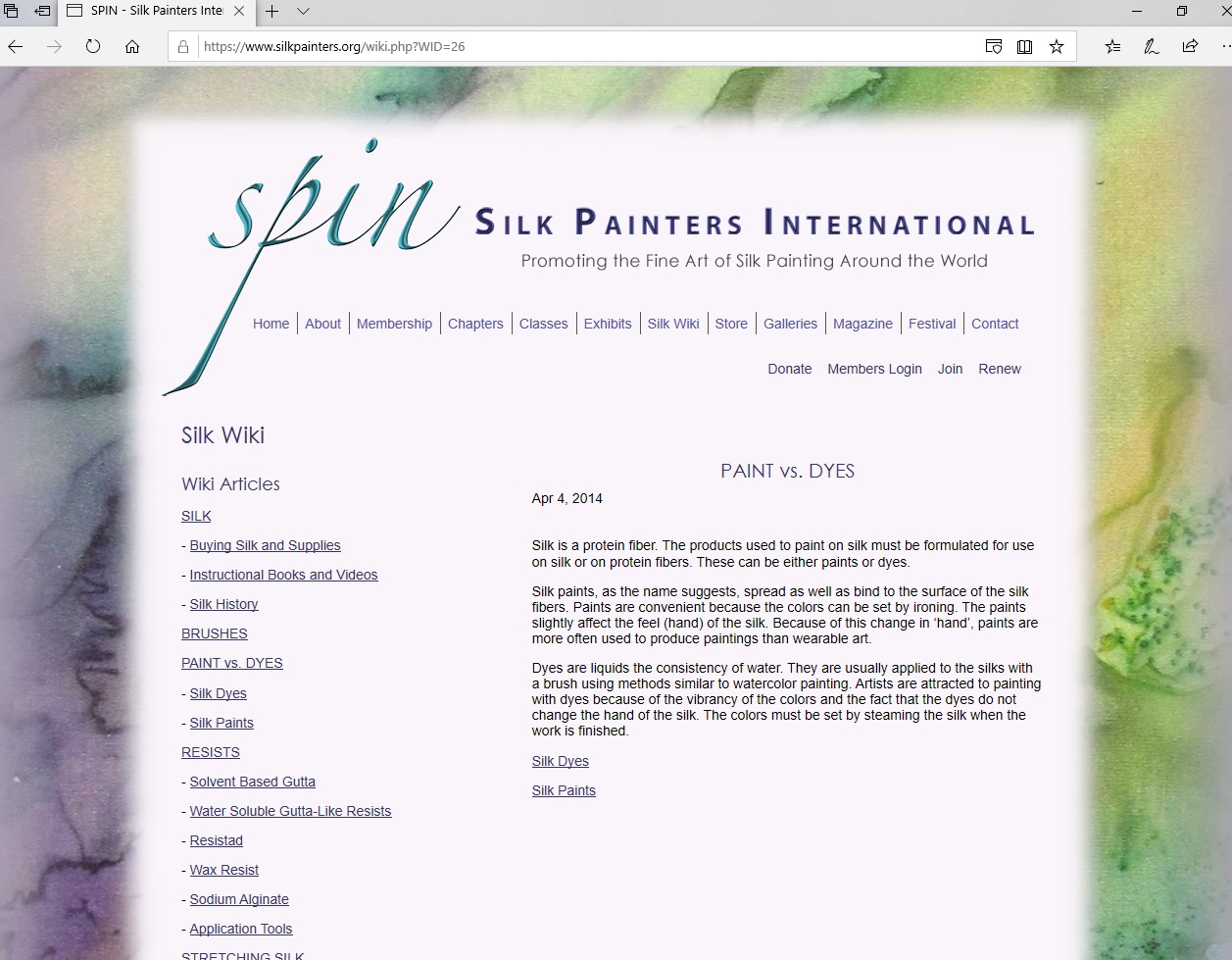 Painting on silk is a technical business. There is an inherent tendency for the colours to bleed freely. The website of SPIN [Silk Painters International] has a good deal of useful information and guide to contemporary materials (and an impressive gallery of contemporary artworks).
