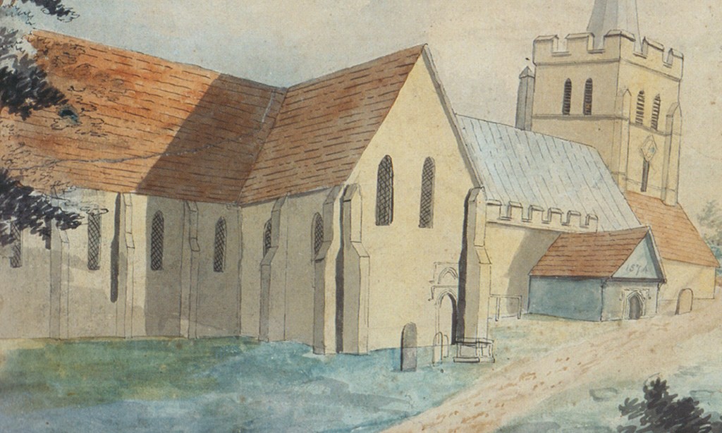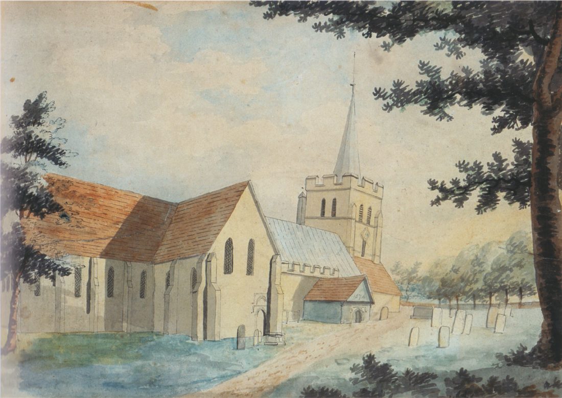 Comparison of the present structure with the watercolour reveals numerous differences. All the original early English lancets along the north side appear to have been lengthened. The north porch, evidently the original main entrance, was removed. New traceried windows have been inserted in the west part of the north aisle.