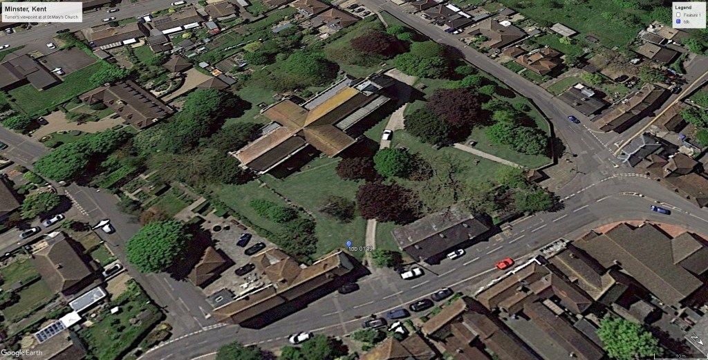 Wilton 1979 appears to be the first to have identified the subject. Turner records the north-east aspect of St Mary’s Church, Minster in Thanet. Randy Tchen has a beautiful comparative photo on Google Earth: