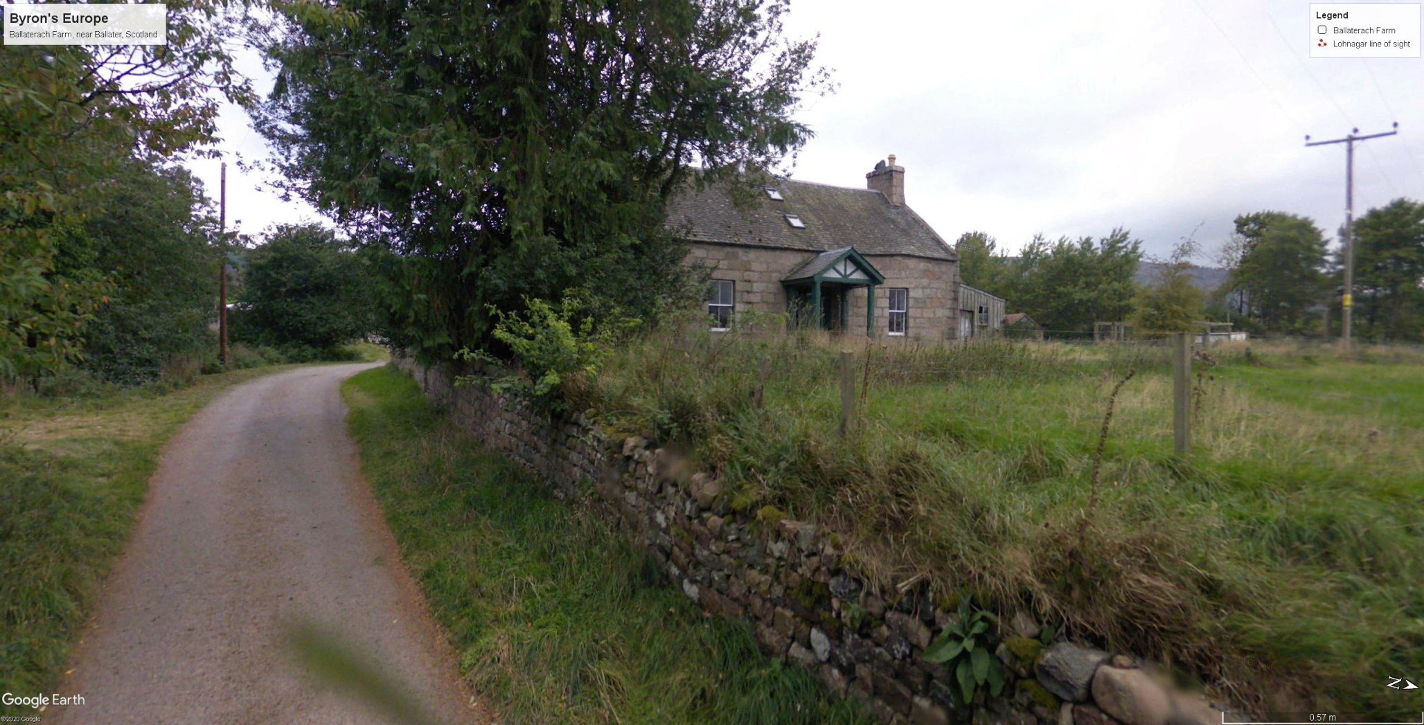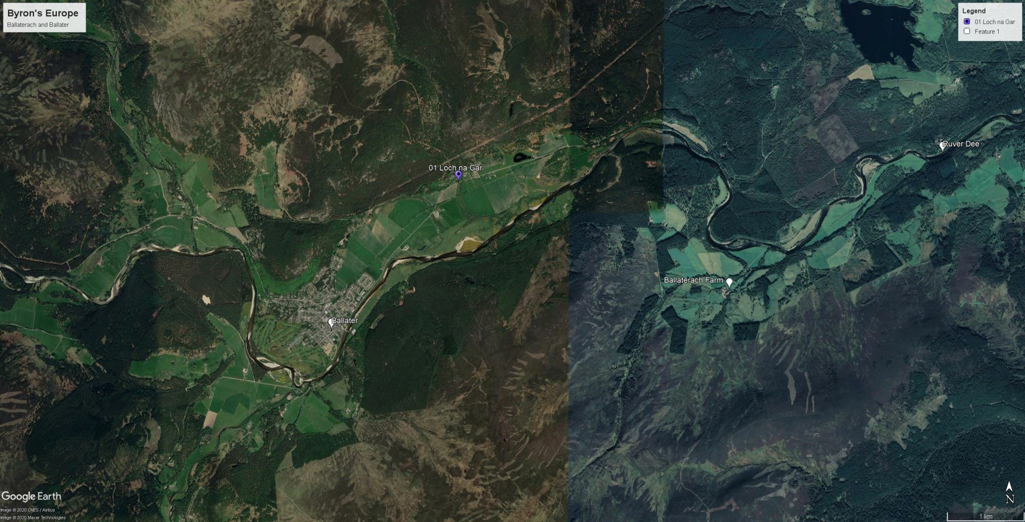 As a boy of eight, Byron spent some time for the sake of his health living in a farm cottage at nearby Ballaterach. He was sent there to escape an epidemic of Scarlet Fever that swept through Aberdeen where he was at school.  Ballater is about forty miles inland of Aberdeen along the river Dee.