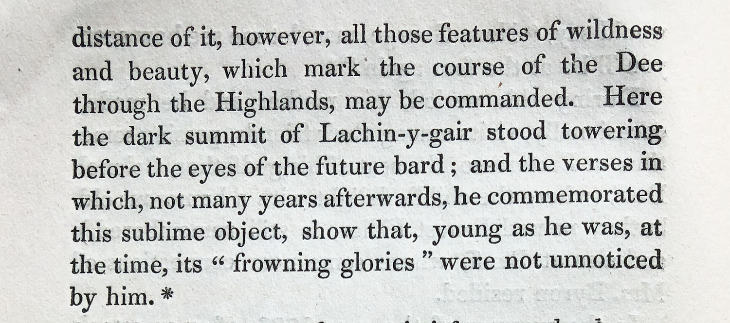 Quite what he might have preferred is unclear, but he steers the reader away from such paltriness towards the broader valley: ‘Within a short distance of it, however, all those features of wildness and beauty, which mark the course of the Dee through the Highlands, may be commanded.’