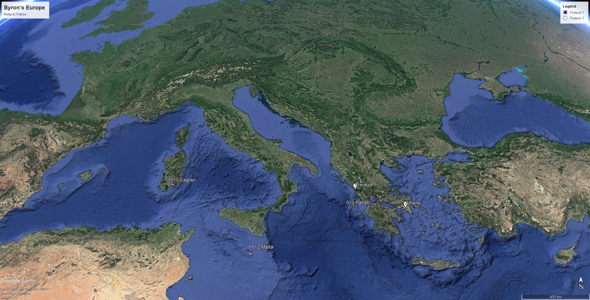 Hobhouse’s Journal is transcribed in an excellent online scholarly edition by Peter Cochran. The account adds no more to this brief first sojourn in Patras, but does suggest a rather piratical aspect to the British navy’s ‘policing’ of the seas in those days. Byron’s correspondence is also transcribed by Peter Cochran, and the Romantic Circles website has an outline chronology of the whole tour.