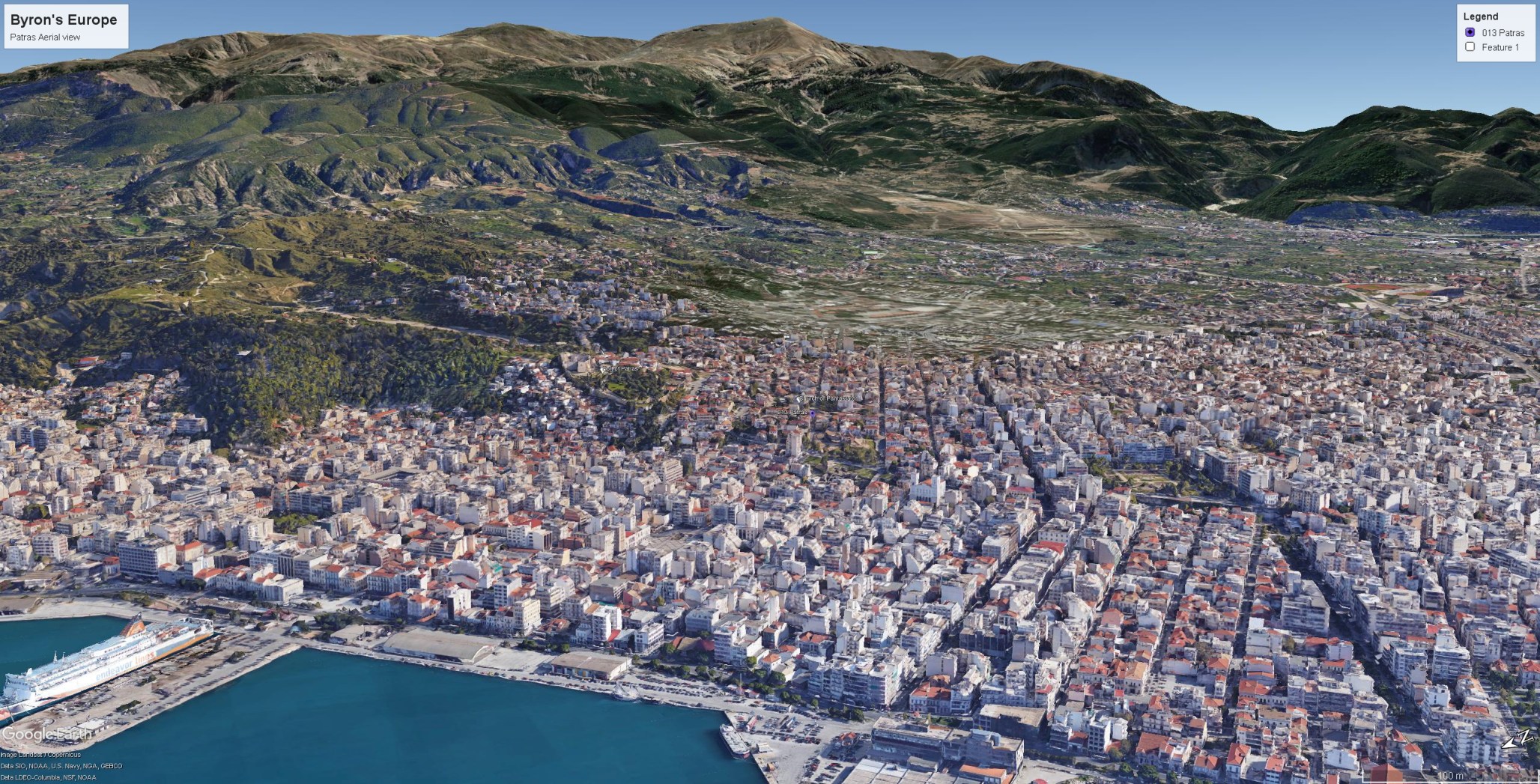 Byron’s first footfall in Greece was at Patras. Now the most important port in western Greece, it was already in 1809 a significant outlet to the Ionian coast, Italy and the western Mediterranean. It exported currants and wine, and was home to several wealthy traders and foreign interests.