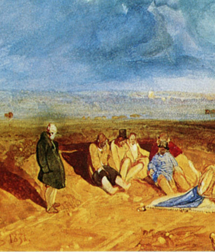 The second fixed point is 1831, when Cotman dated a major watercolour at Norwich Castle Museum. Cotman returns to the subject of the 1813 etching and reconceives the subject in such terms of intense colour and under an extraordinary sky that it must be numbered amongst the most important achievements of his later career.