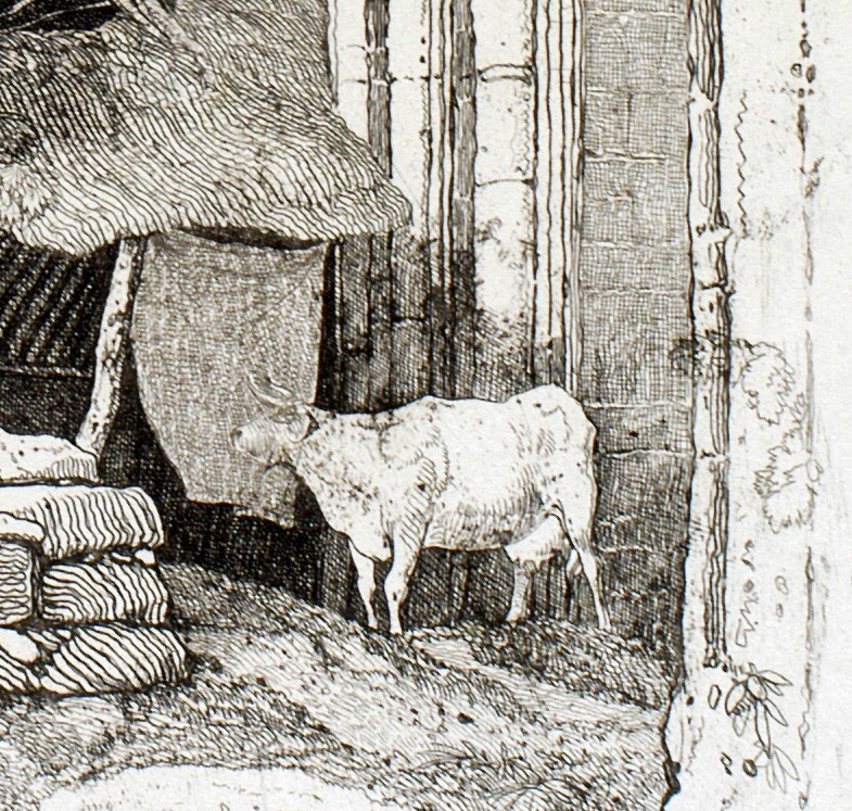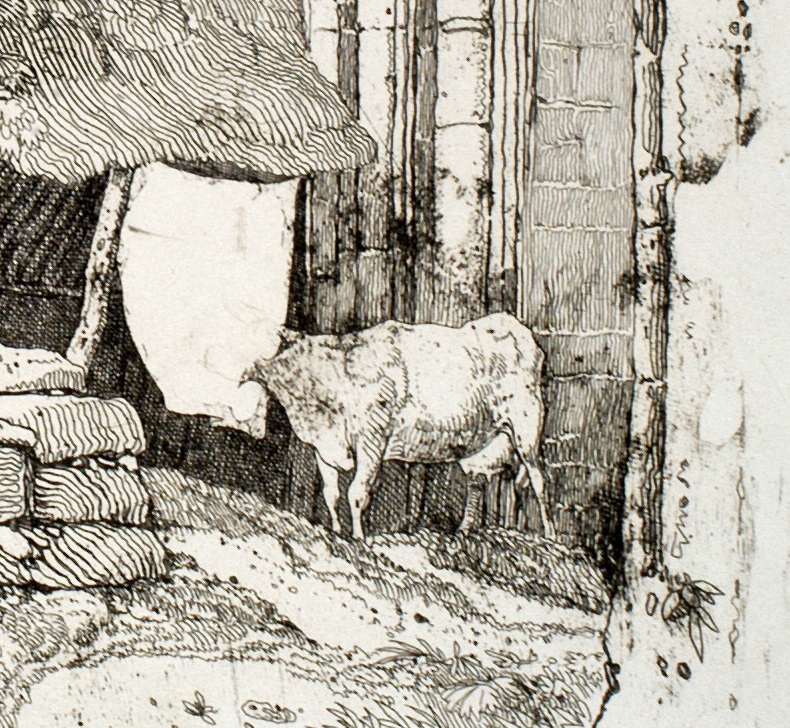 It must have been quite a step up to work on this scale, and from the evidence of two early states that have descended in the Cholmeley collection, the plate took some while to resolve. The date is present in the earliest state, so it is clear that he did not edition it at the date of inscription. One issue that he was forced to address was that of the cow to the right.
