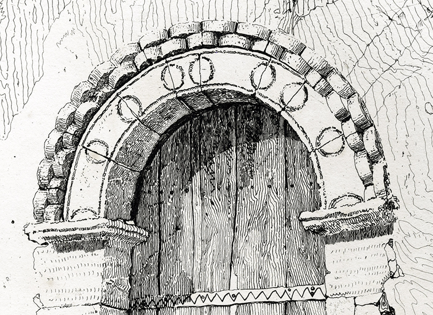 The obscurity of the subject and the wilfulness of the choice is discussed under plate 12. As observed there, the Norman church that Cotman visited was replaced in 1857 by a new one a few hundred yards away. The Norman decorative features were dismantled and re-erected as part of the new structure.
