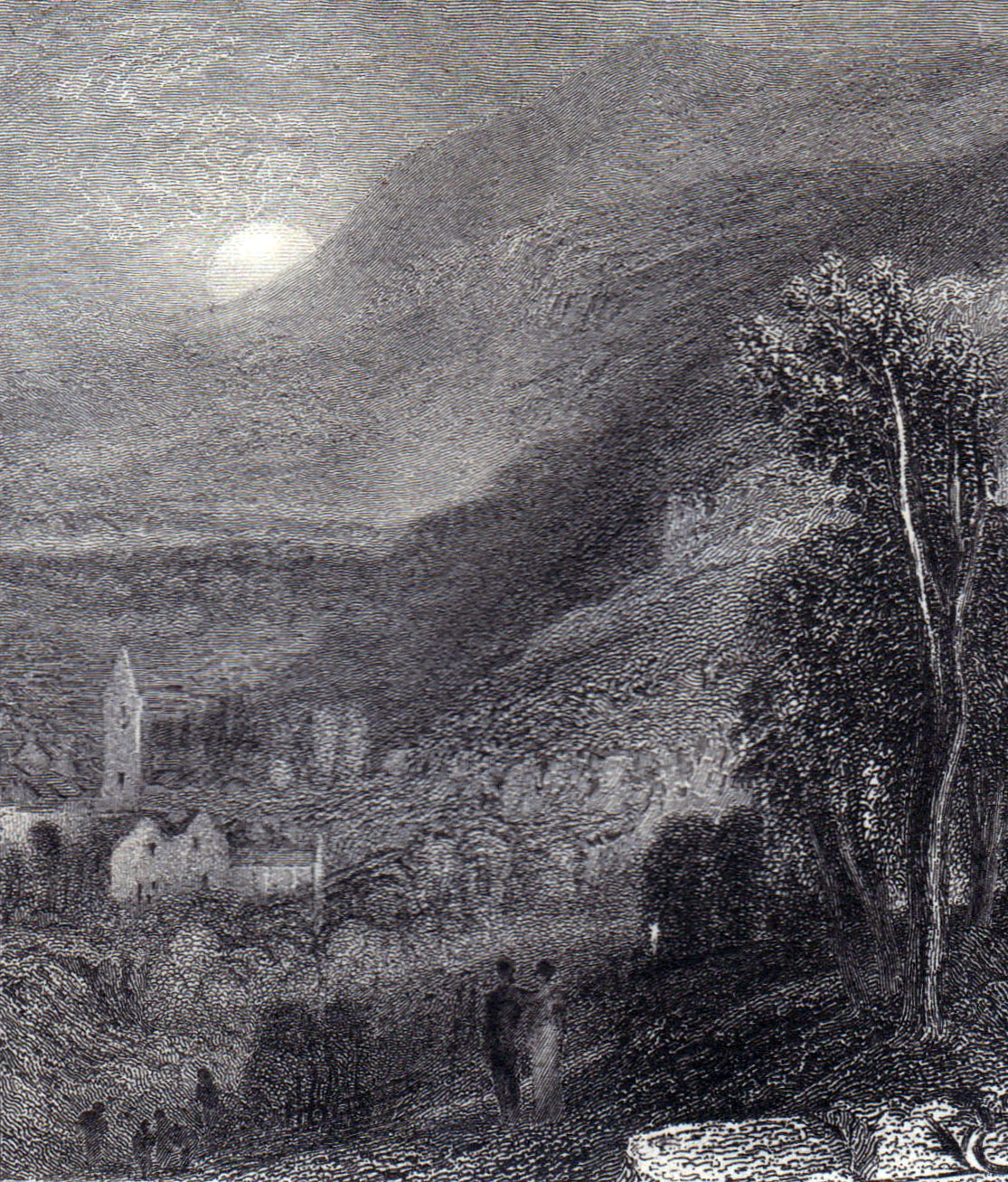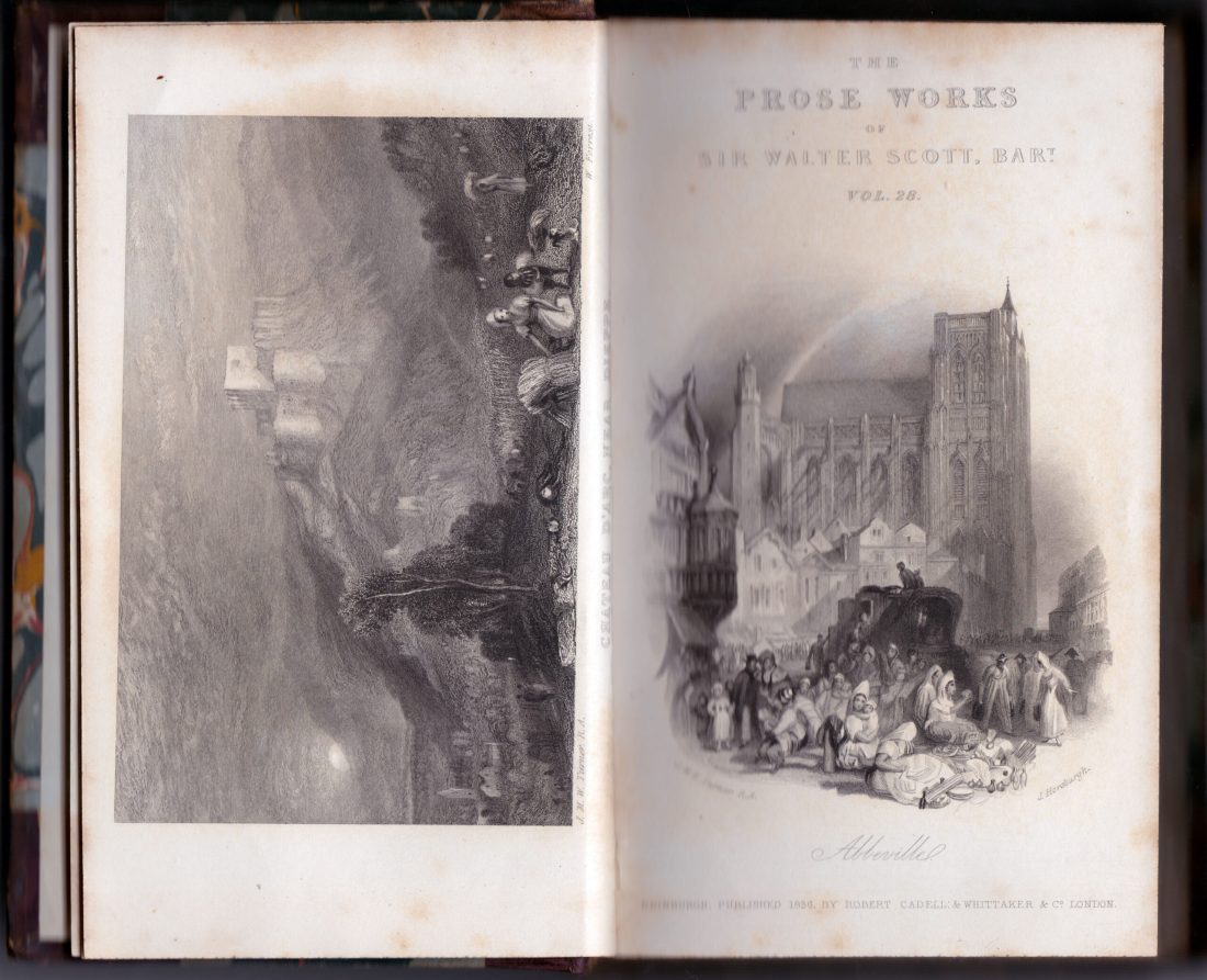This is the penultimate of forty watercolours engraved as frontispieces and title-pages for the 28 volume set of ‘The Prose Works of Sir Walter Scott’ issued by Robert Cadell of Edinburgh 1834-36. The present subject was engraved by W Forrest, dated 1836 and published as the frontispiece to the final volume, no.28 ‘Tales of a Grandfather’, opposite the title-page vignette of Abbeville. The final two volumes of Scott’s ‘Tales of a Grandfather’ examine the history of France.