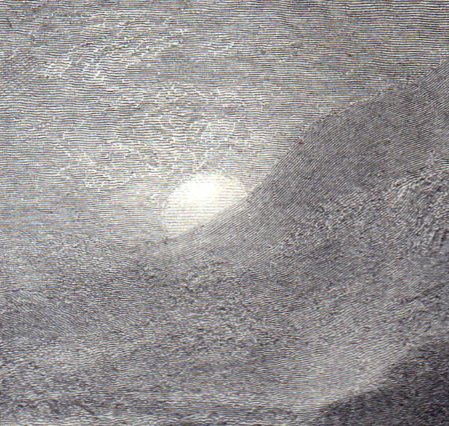 The latter is perhaps uncertain. There is a circular mark in the right place, but that might be part of a tree, or even belong to the main sketch above. We can, however say with certainty that the effect is plausible. In the summer months a full moon does indeed rise in this part of the sky.