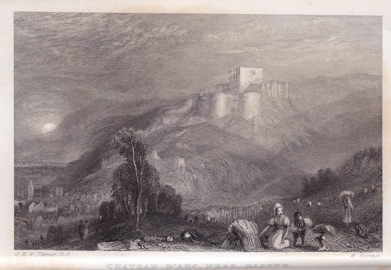 So Turner’s subject in both this and Abbeville, and indeed in the French subjects in the companion volume, Calais and Rouen in volume 27, is the approach to France. All four subjects represent key landmarks for the British traveller landing in France. Abbeville was a principal stopping point for travellers coming from the northern ports; the Chateau d’Arques a major landmark for arrivals from Dieppe, Calais the principal port of entry from Dover, and Rouen, the principal town on the Seine en route to Paris from Dieppe or Le Havre.