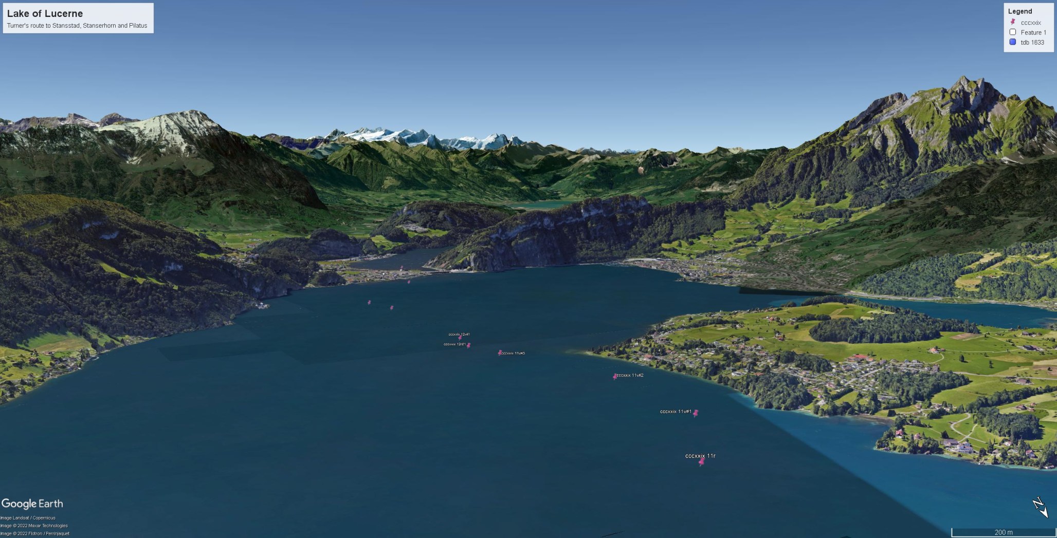 Here we resume our journey through Turner’s Between Lucerne and Thun sketchbook. We left Turner enjoying a boat ride across the Lake of Lucerne and taking in panoramas of Mont Pilatus in one direction and of the Burgenstock in another.