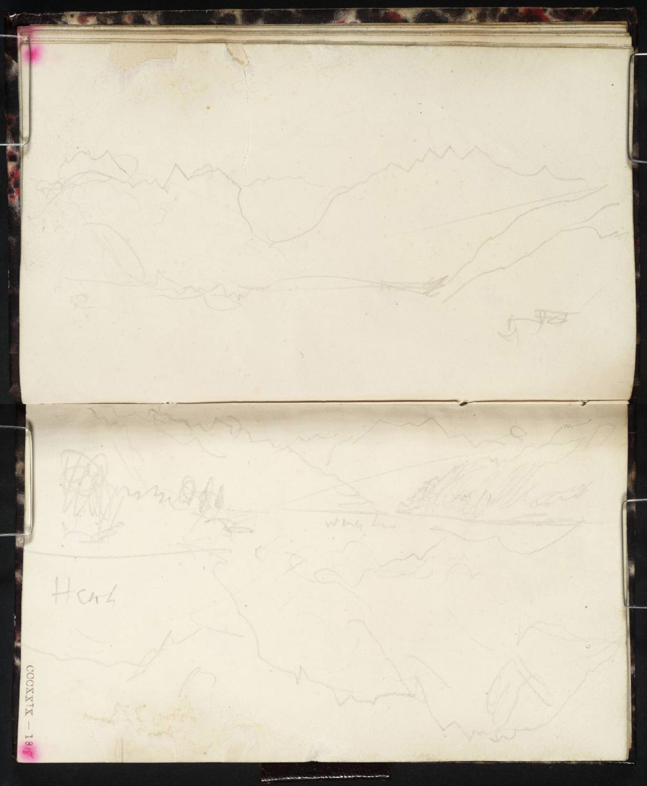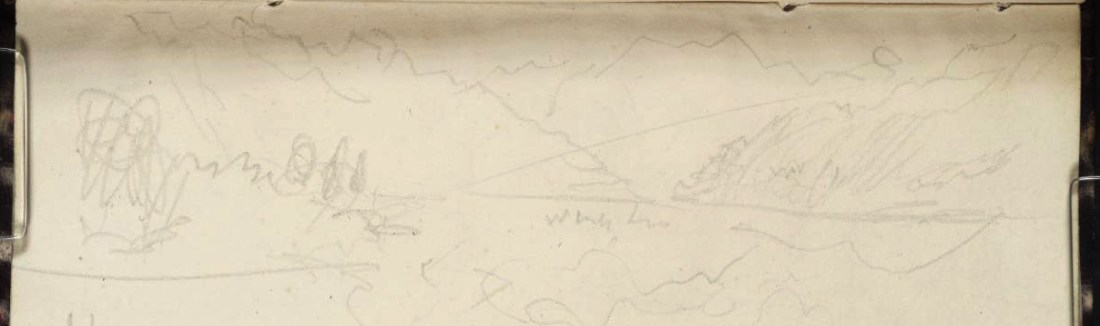 In the second sketch, made with the page turned round, Turner continues the panorama to the left to record the east flank of the Sarnersee, nearly as far as the entrance to the Melchertal.