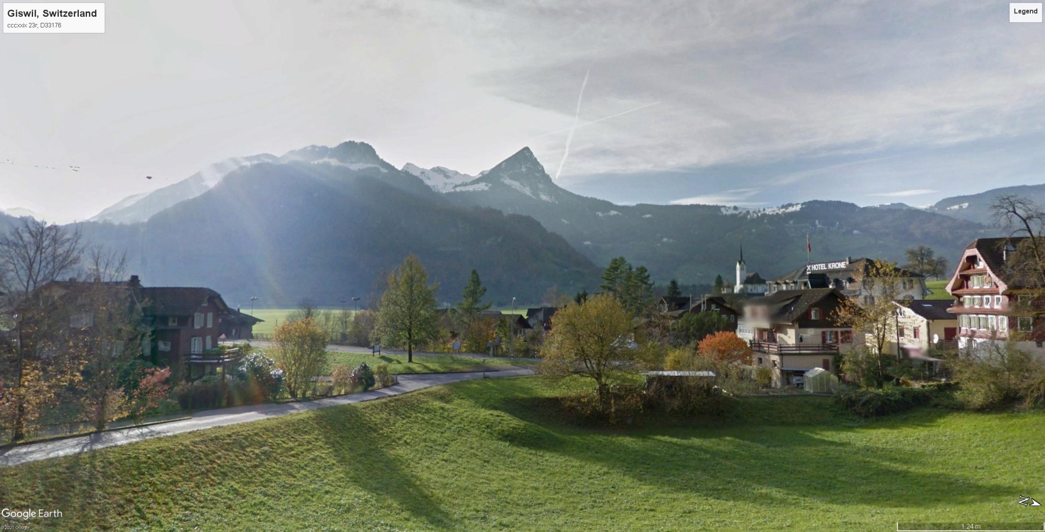 The next sketch in sequence is that on the page opposite (f.23r) which records the Giswilerstock and Giswil church from near the present Hotel Krone where the road begins its climb of a little over 200m up the Kaiserstuhl to the valley of the Lungernsee.