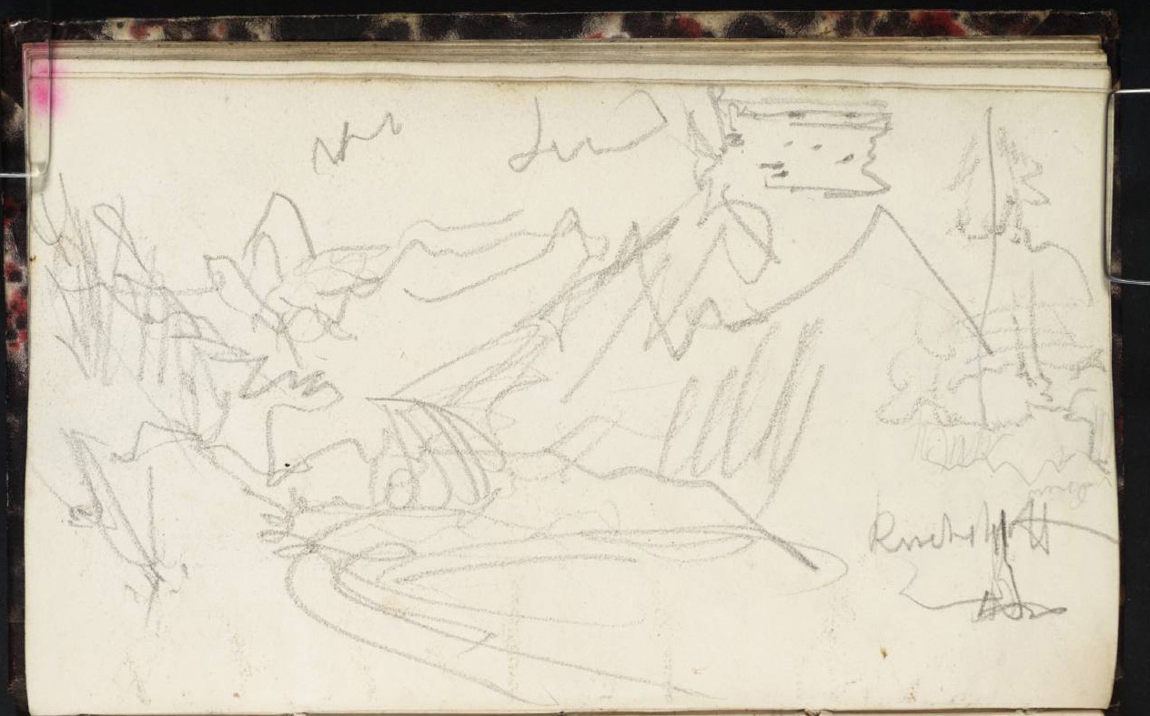 Turner seems to have been decidedly impressed with the scenery around Giswil, and set down sufficient information to develop into a watercolour. Before leaving, he made another sketch [the middle sketch of three on f.22r]