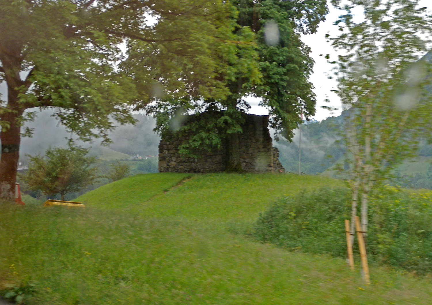 At the top of this page is a small detail of a ruined tower. Might this be the castle of Rudenz? The remains are by no means so tall today, but it might be possible to corroborate the identification through more local records?