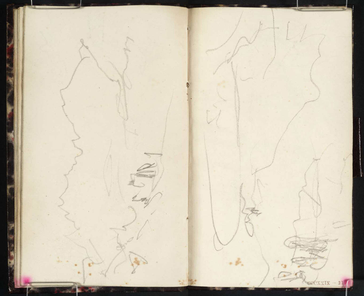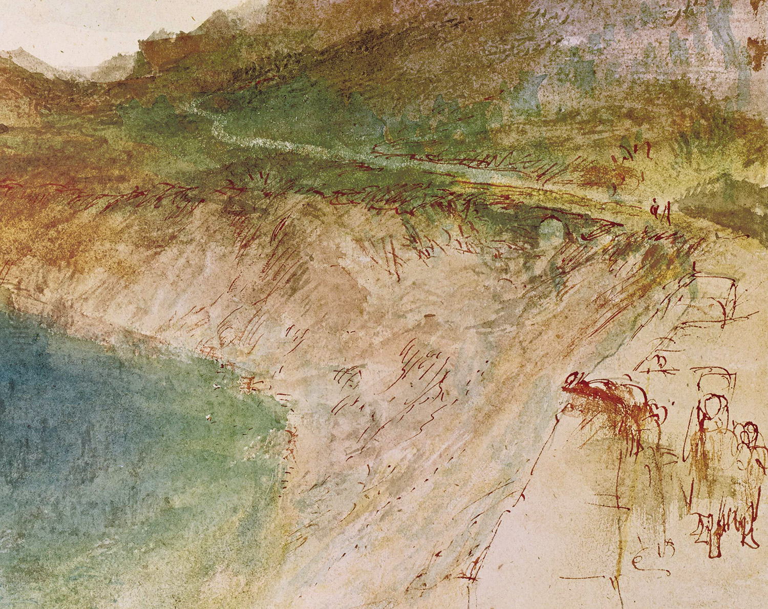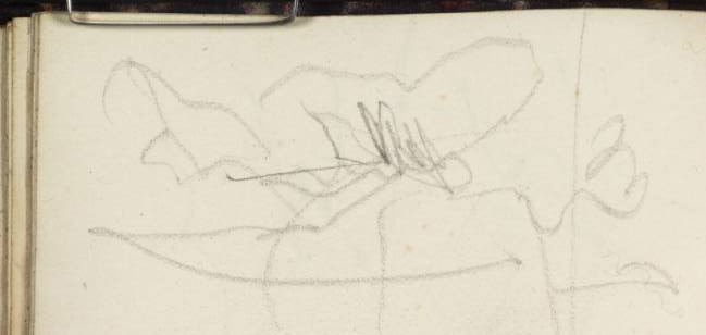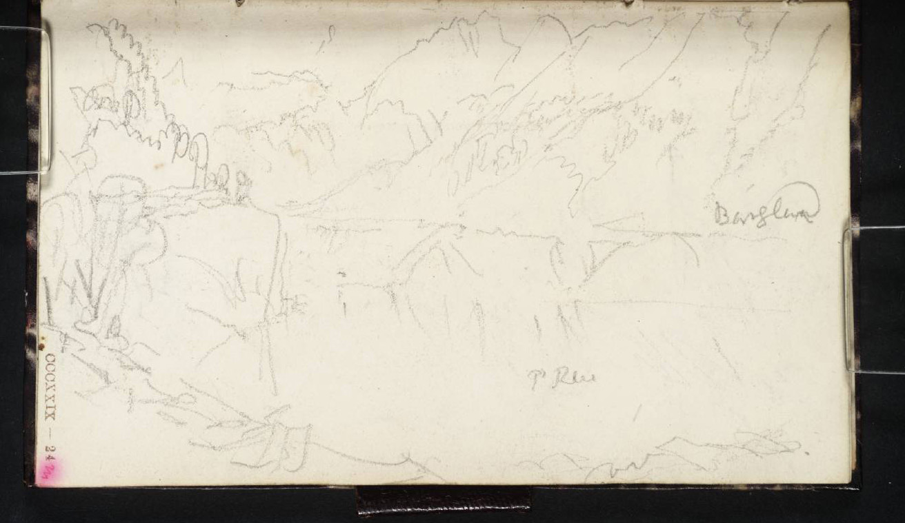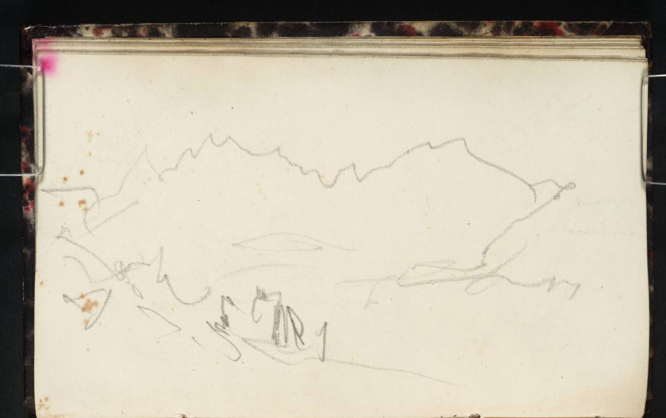 Turner recorded his first sight of the lake in a few lines on f. 21v, taken so hastily that he scribbled over part of a previous sketch. For Turner, first impressions were always vital and wherever possible he tried to set something down, no matter how slight.