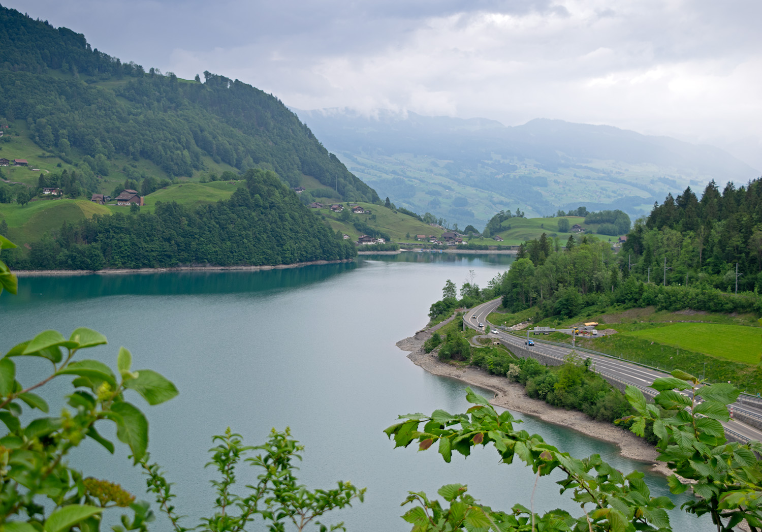 There is hardly a more dubious instance of environmental interference in the entire history of Switzerland. Briefly in 1836 it was decided to lower the lake to reclaim land for pasture and cultivation. A team of miners dug a tunnel up from the Kaiserstuhl to a point beneath the lake at the desired level. The likelihood of millions of tons of mud and water breaking through the crust must have lent some urgency to the surveying. At last, a keg of gunpowder was set with sufficient fuse for the tunnel to be cleared and the bottom of the lake breached. The water level was lowered by 18m, or roughly 60 feet.
