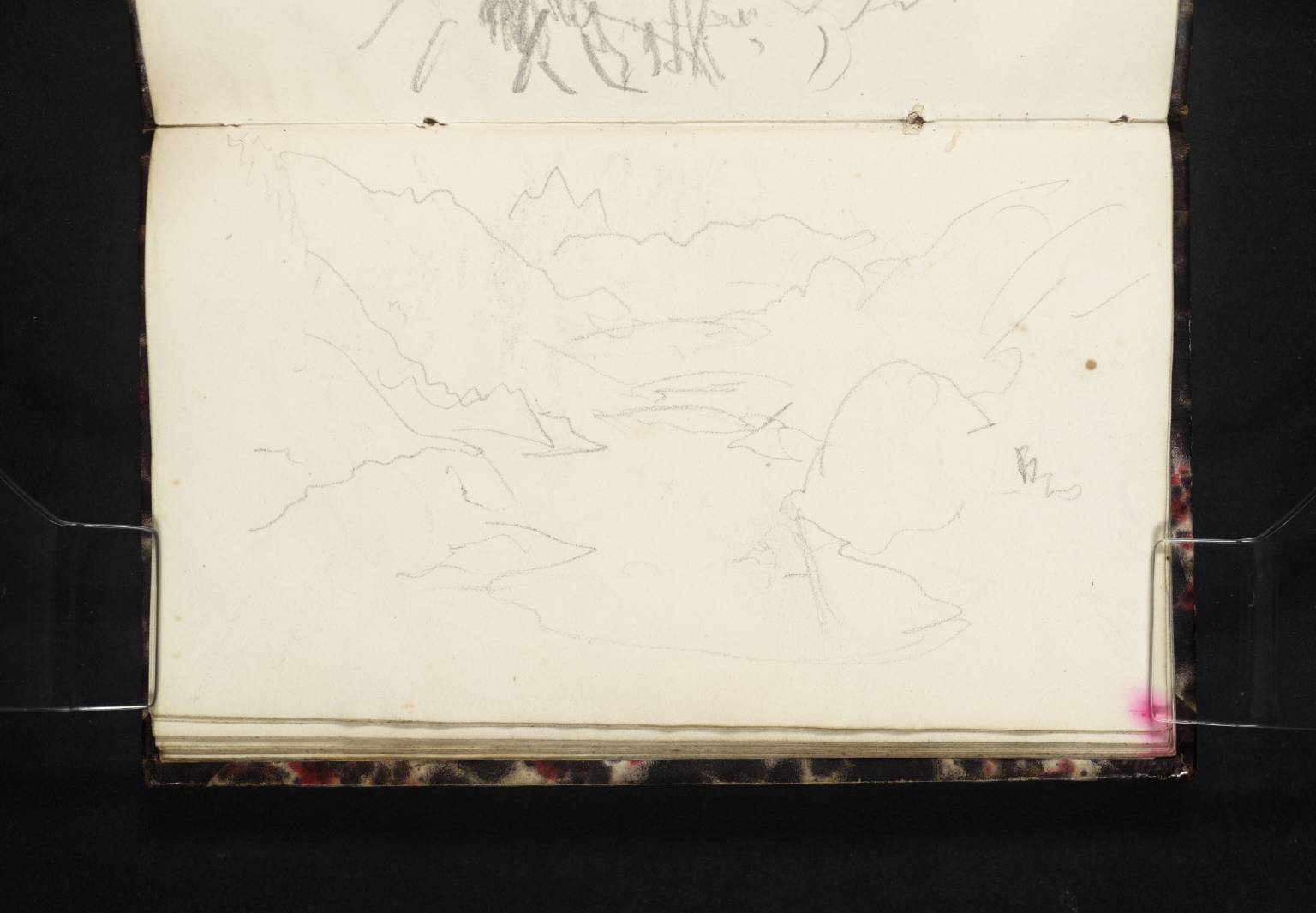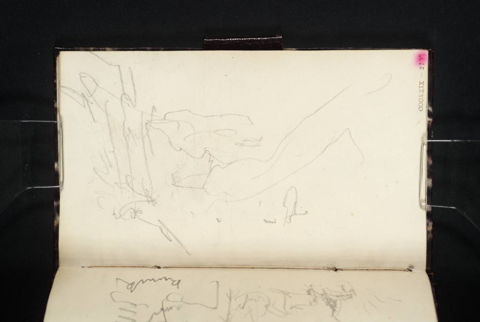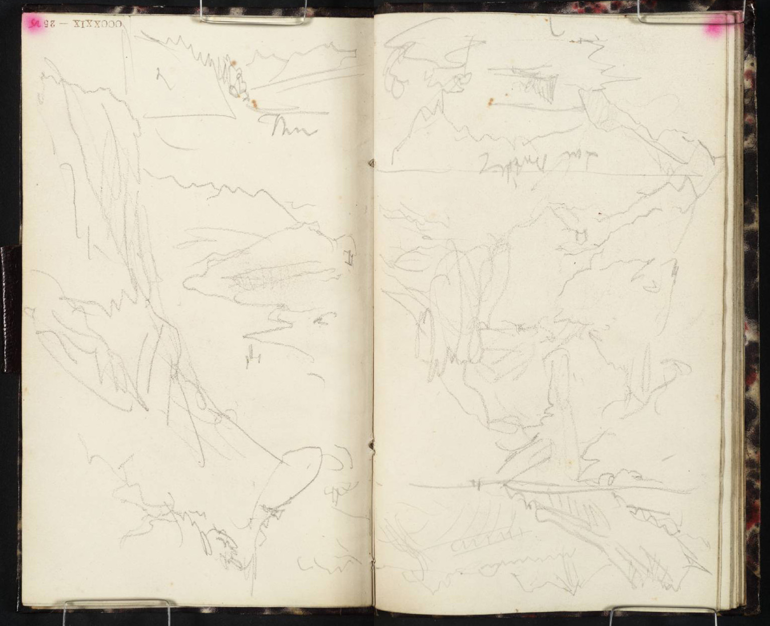 The next page spread presumably records views ascending to the pass but the sketches are so scrappy it seems a faint hope that their subjects might be identified with complete certainty.