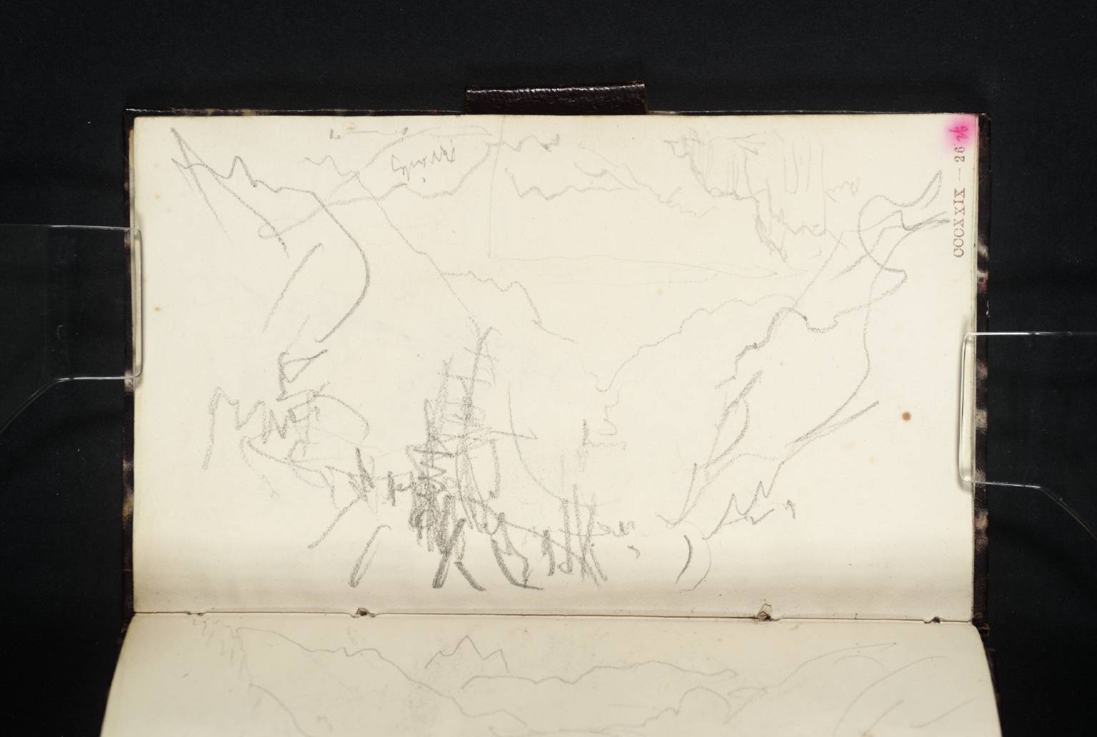 On f.26r Turner made a quick jotting of a receding valley prospect. Turner was always concerned to record key turnings in the road, and here on the Brunig he seems to have been trying to record the complete succession.