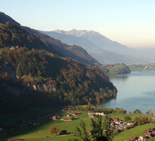 Shortly after turning the Balmiflue, the Brunig path gives a final glimpse into the Lungern valley.
